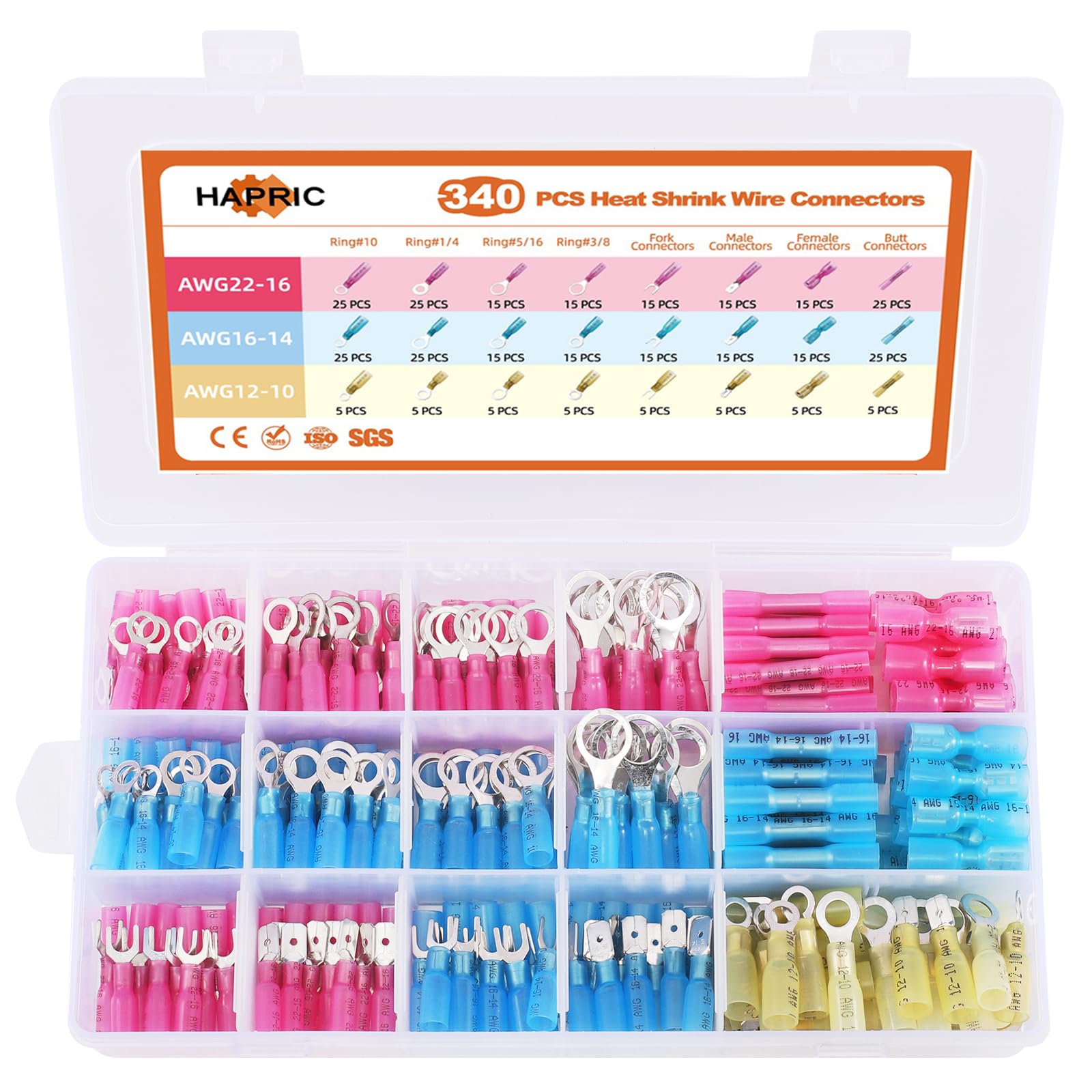 Kit de 340 conectores de cable termorretráctil, terminales eléctricos impermeables, conectores a tope, conectores de pala aislados