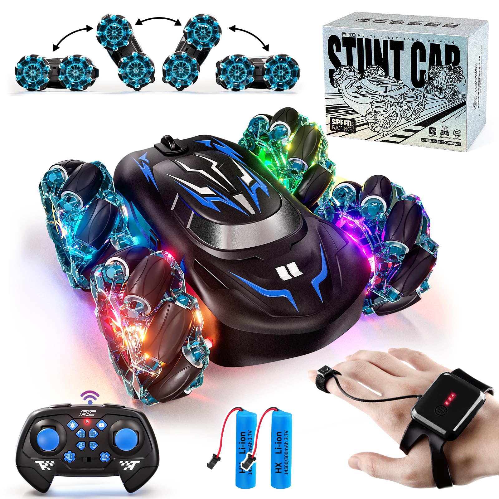 Auto de acrobacias a control remoto de 2.4 GHz, auto de control remoto 4WD de doble cara con detección de gestos, auto de control