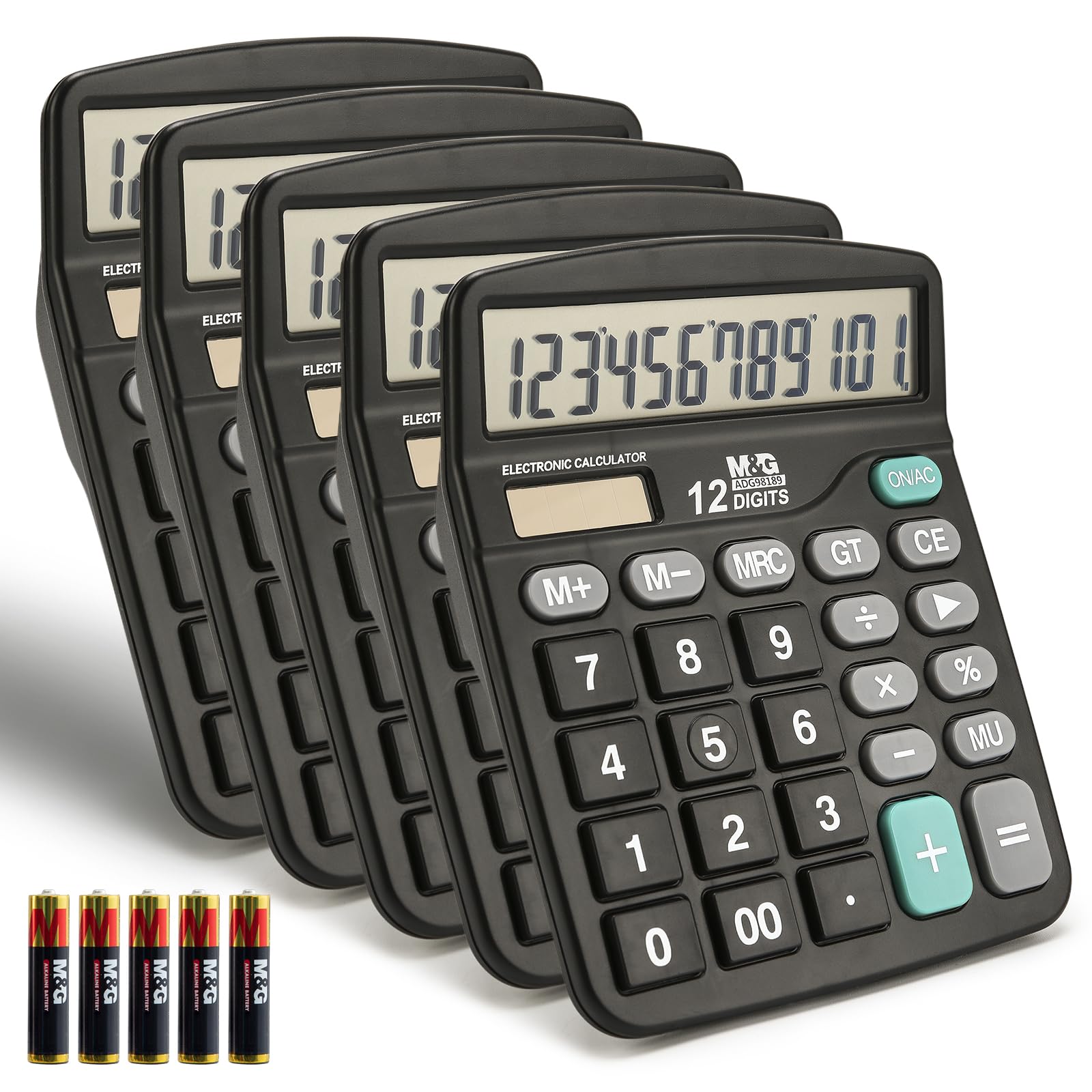 M&G Calculadora de escritorio de 12 dígitos con pantalla LCD grande, energía solar dual y batería, calculadora de botón grande emp