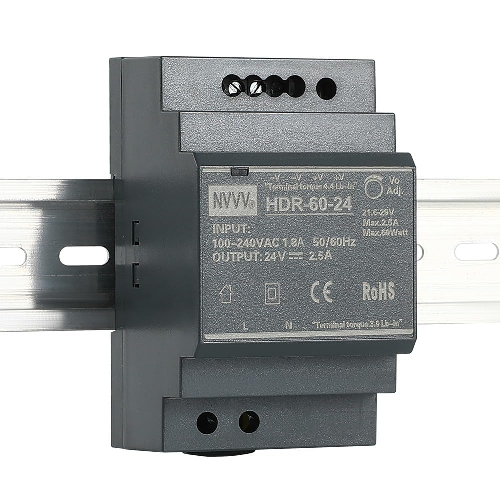 HDR-60-24 Fuente de alimentación de riel DIN 3SU en forma de paso ultra delgada, 24 voltios 2.5 amperios 60 vatios