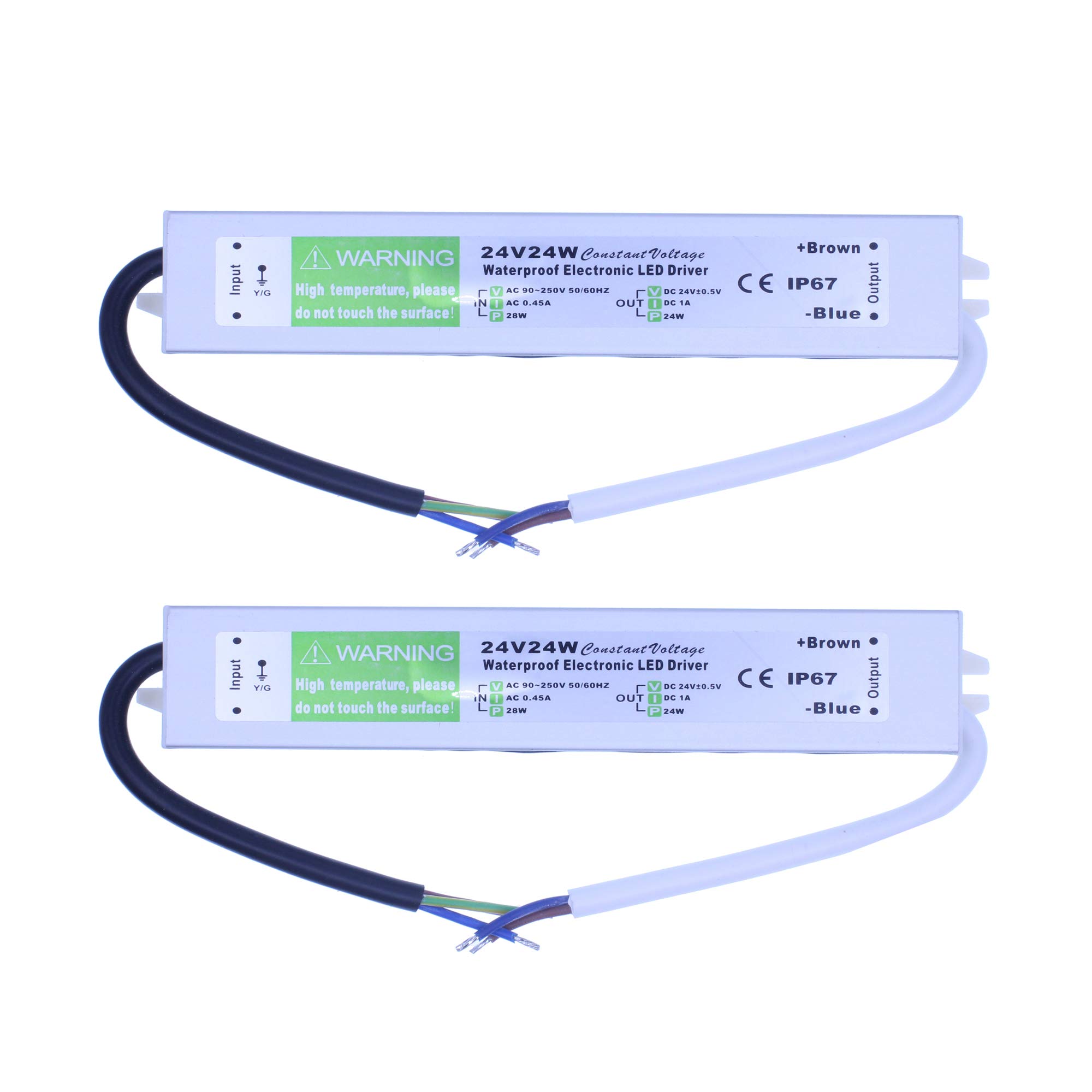 2 piezas AC a DC 12V 2A 24W impermeable IP67 larga aleación de aluminio de bajo voltaje LED tira de luces de conmutación fuente de
