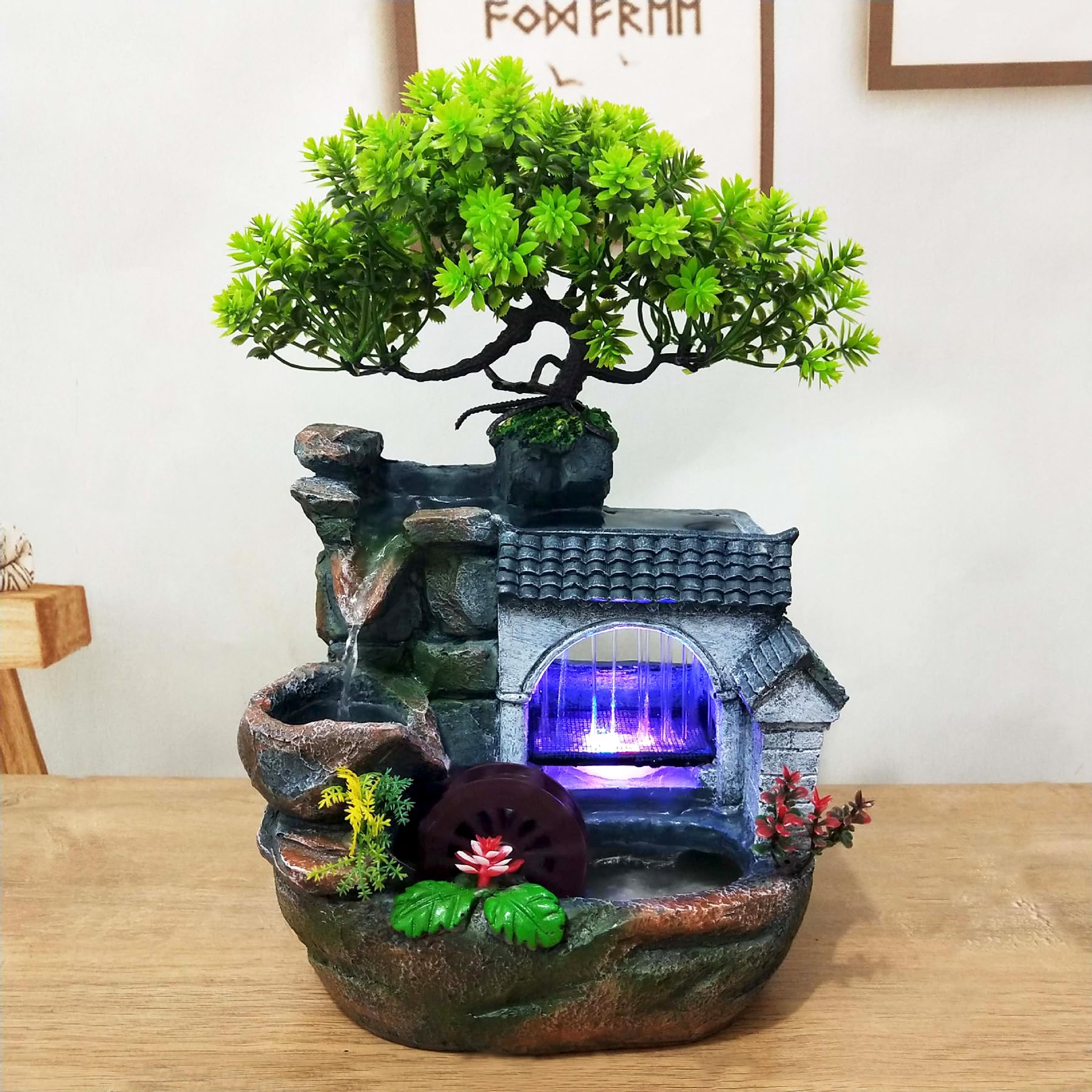 Fuente de mesa para interiores, cascada de 3 niveles, fuentes de meditación zen con luz LED, escritorio para el hogar, relajante p