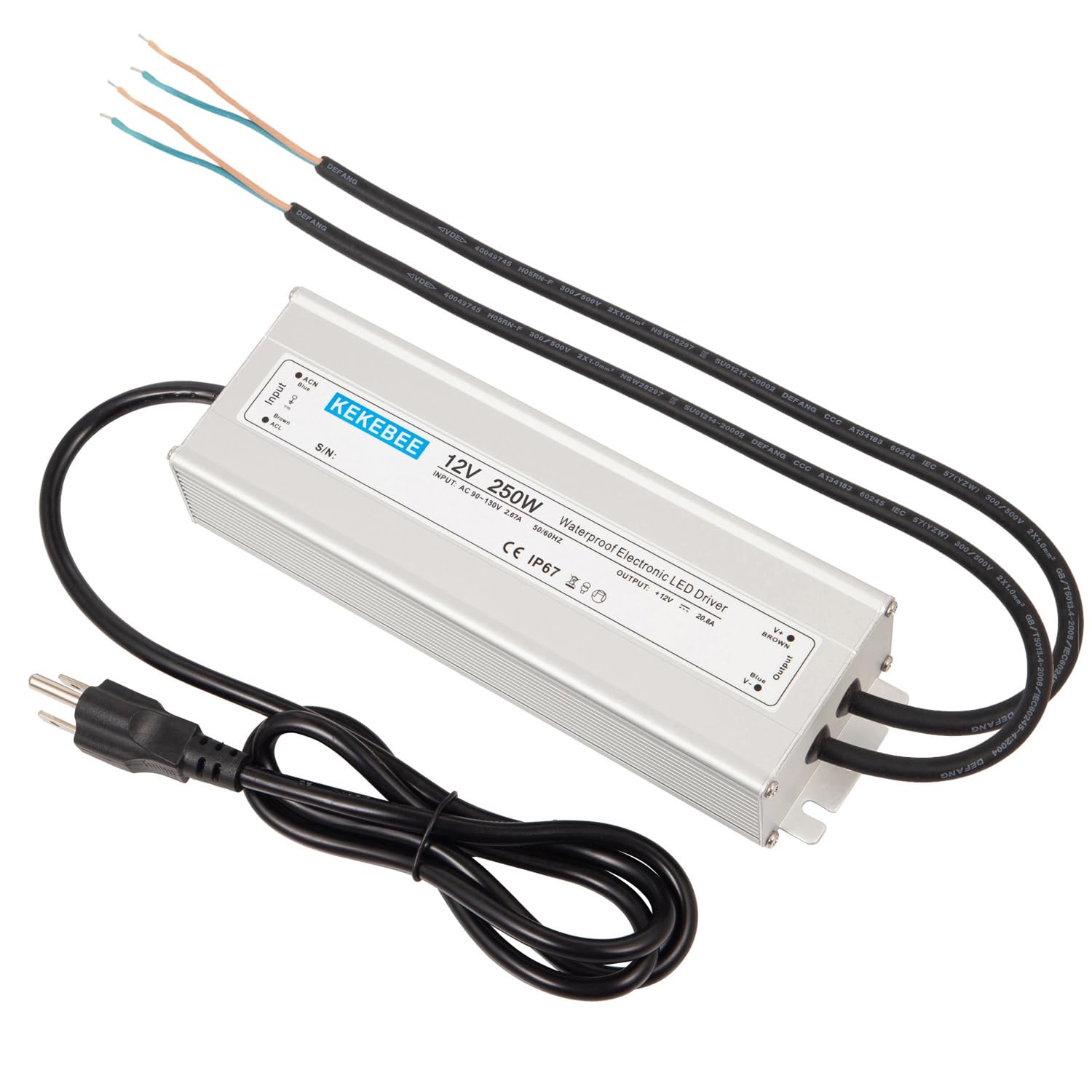 Controlador LED 12V250W Fuente de alimentación impermeable IP67 AC90-120V a DC 12V20.8A Convertidor Fuente de alimentación conmuta