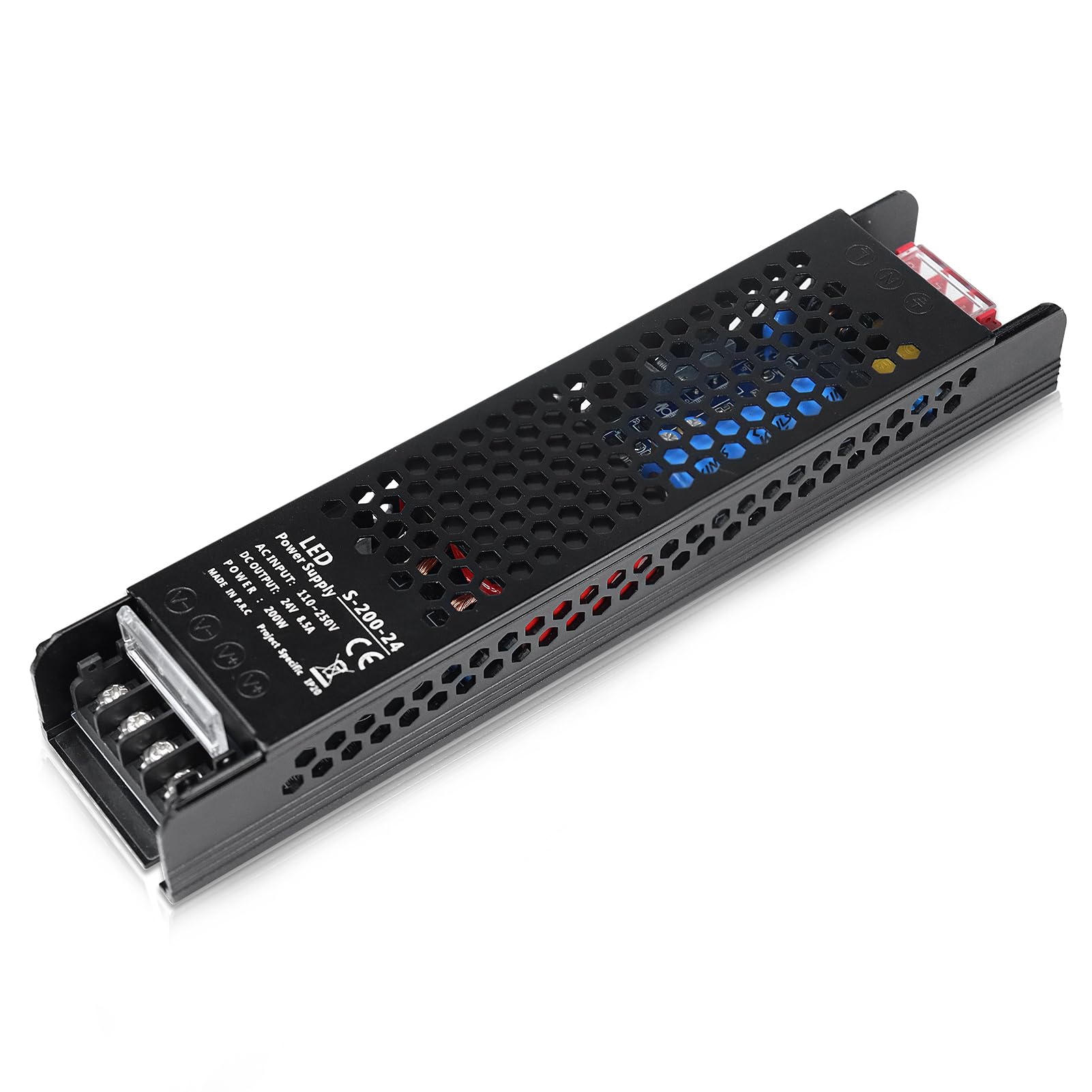 inShareplus DC 24V 8.5A 200W Fuente de alimentación conmutada, AC 110 ~ 250V a 24 voltios universal DC transformador conductor, fu