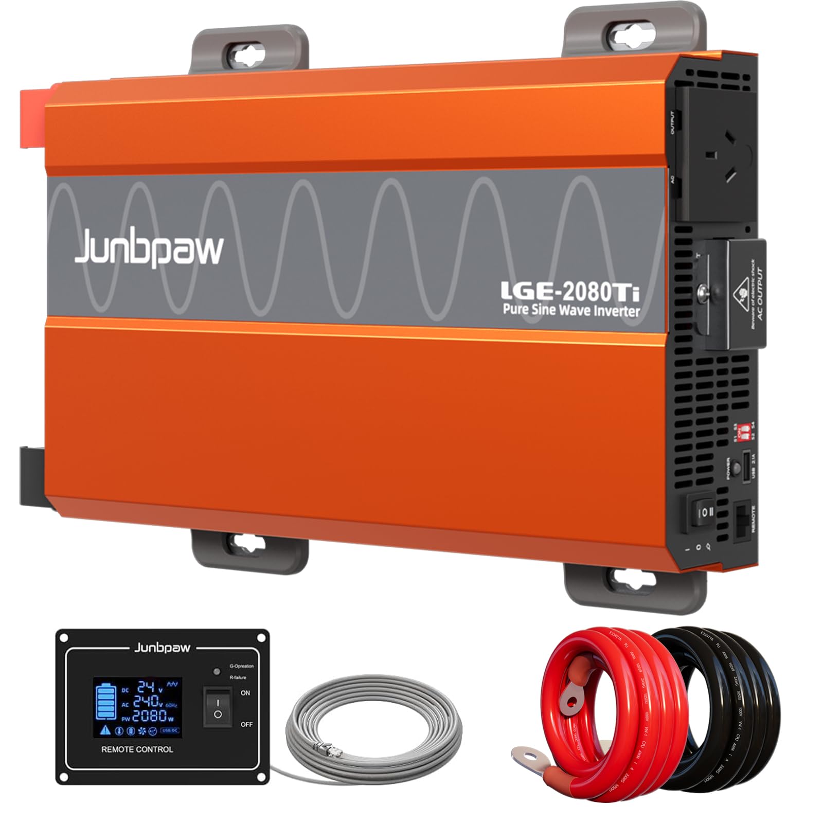 Inversor de onda sinusoidal pura de 2080 W, 24 V CC a 110 V/120 V CA, pico de 6000 W, USB de 5 V/2.1 A, ventilador silencioso, con
