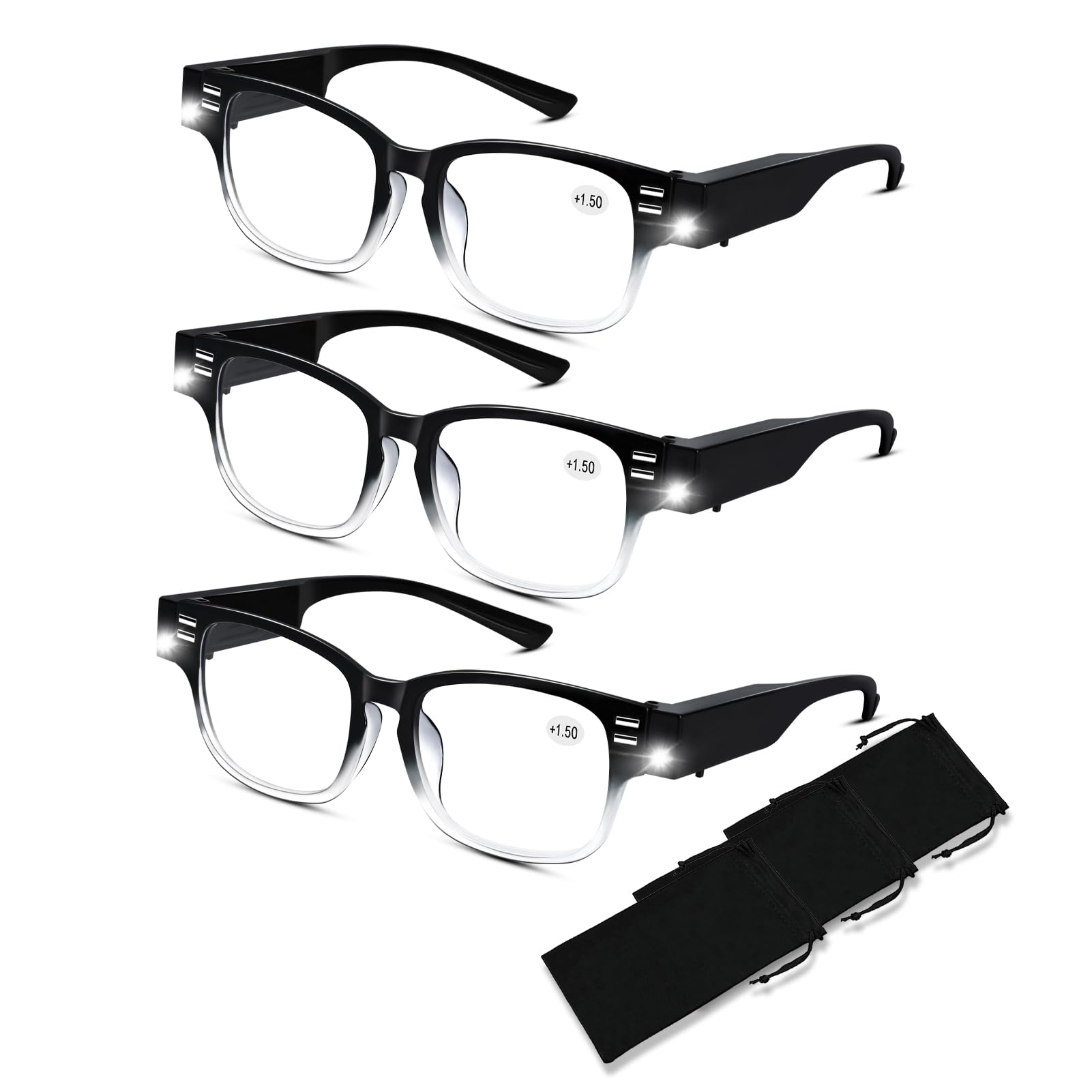 Anteojos de lectura con lupas con luz LED brillante, lentes de lectura iluminados, anteojos de bloqueo de luz azul para hombres/mu