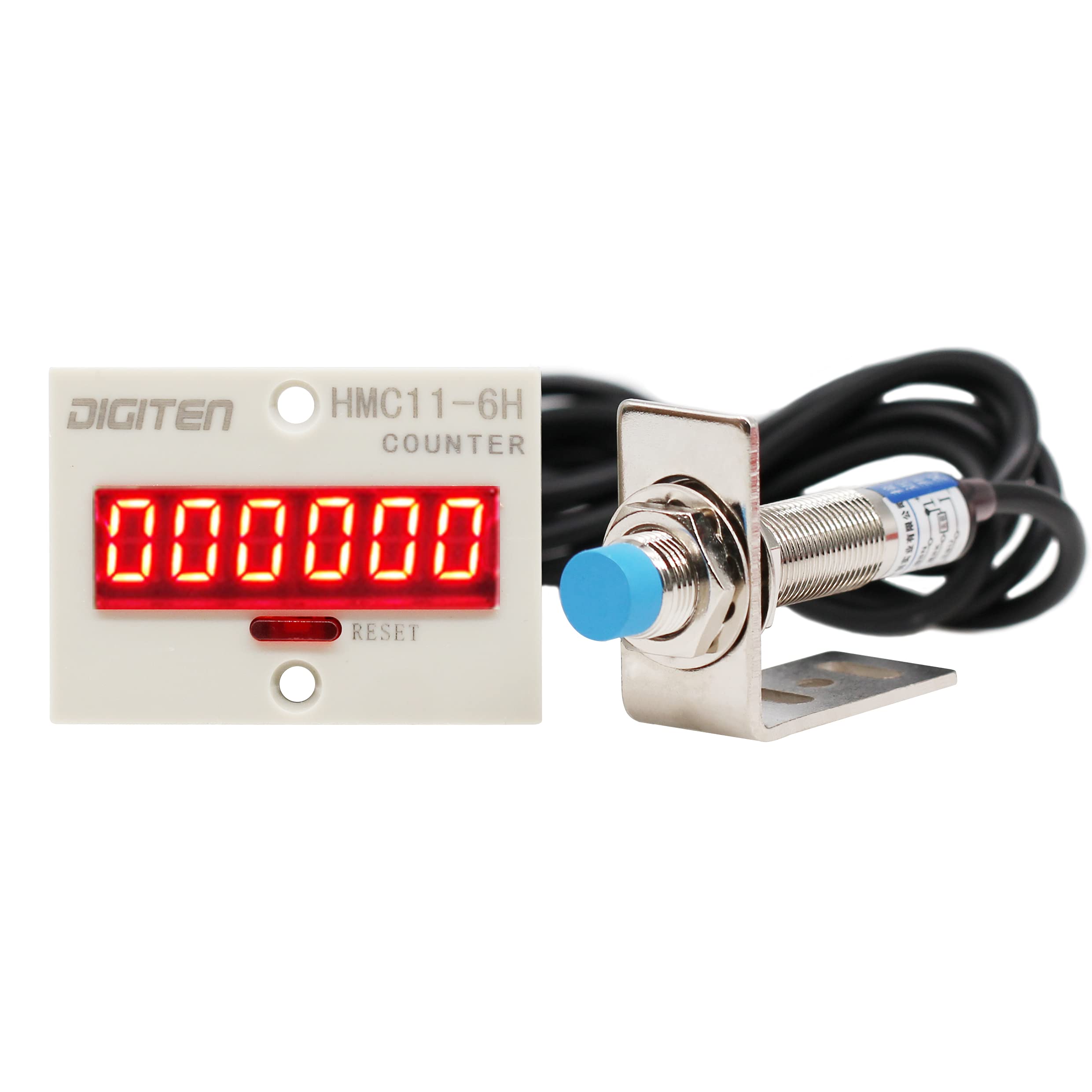 DIGITEN 12V-24V 6-dígitos 0-999999 Pantalla LED Digital UP+Interruptor de proximidad inductivo Sensor NPN+Soporte