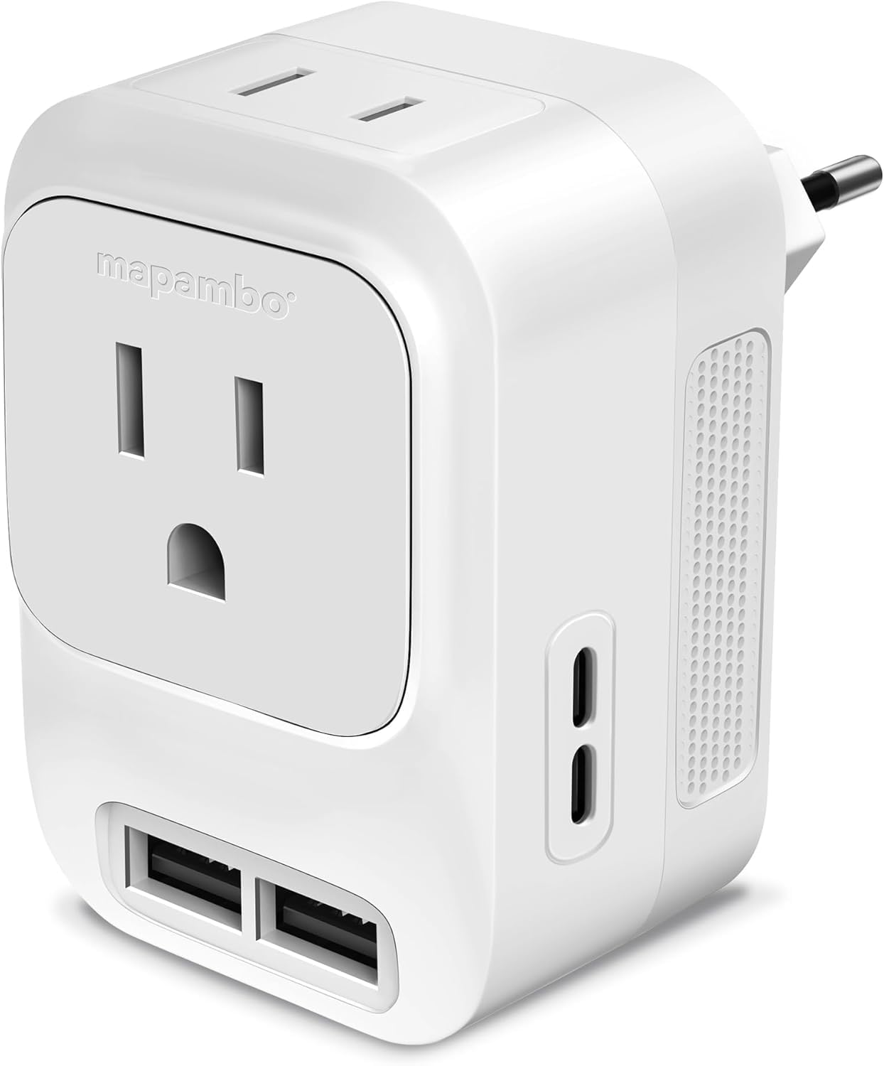 FOVAL – Adaptador de enchufe de viaje europeo, regleta de alimentación de EE. UU. con USB C y 4 puertos USB, 3 salidas de CA, mont