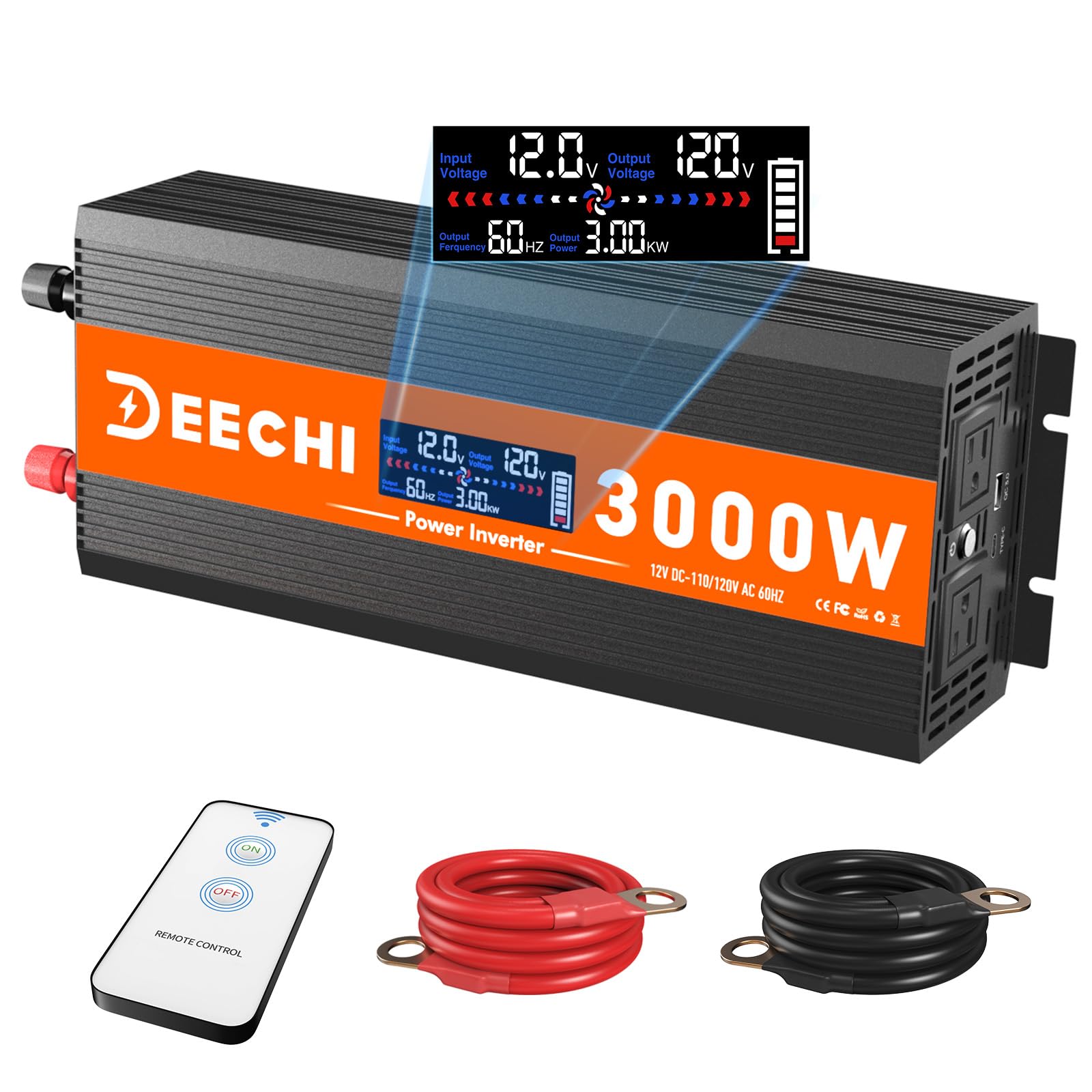 Inversor de corriente de 3000 vatios para automóvil/hogar, convertidor de 12 V CC a 110 V/120 V CA con 2 salidas de CA, puerto USB