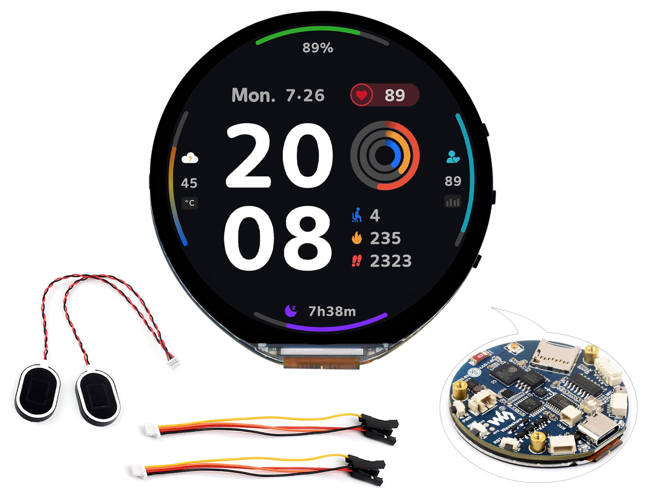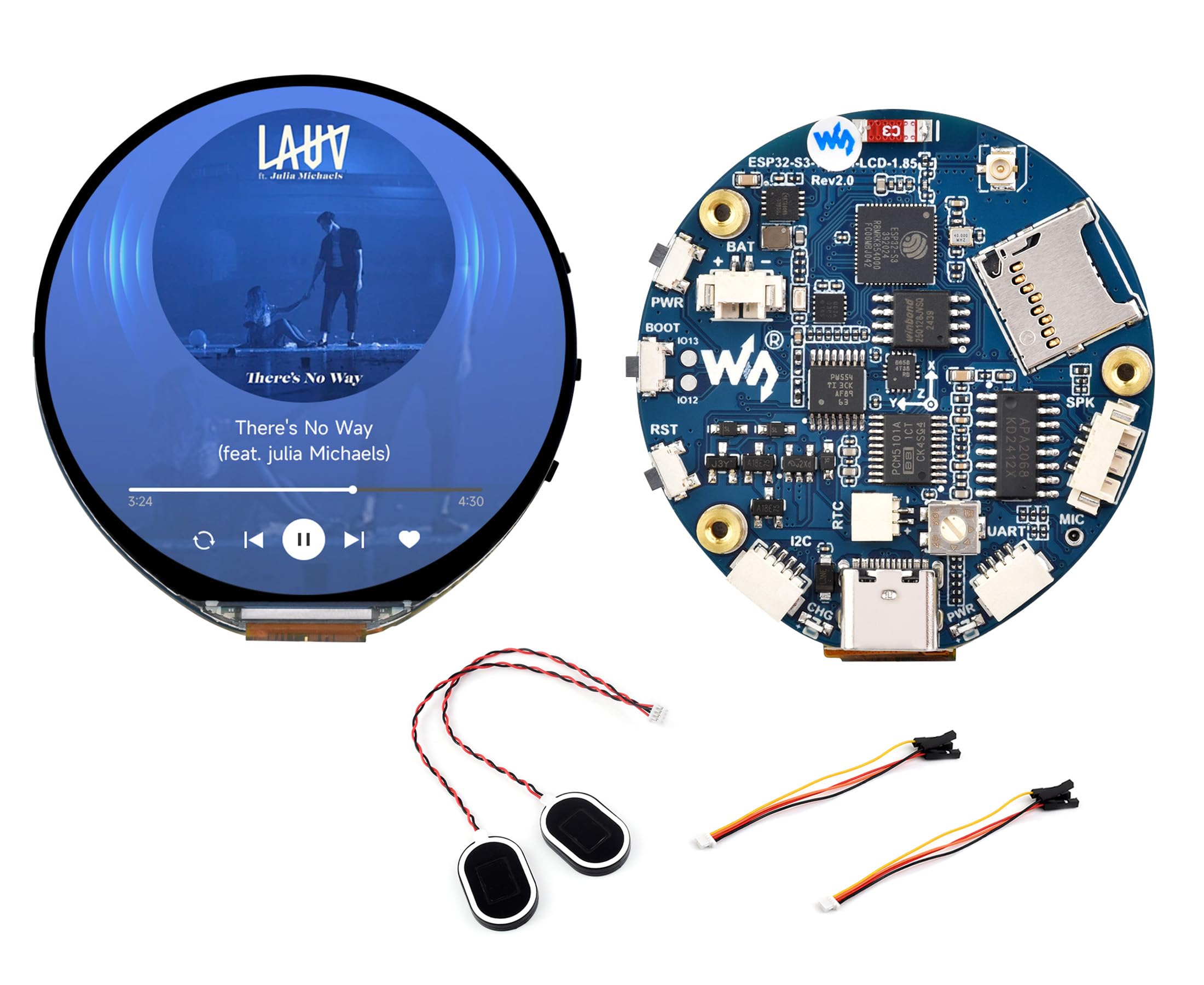 ESP32-S3 con tablero de desarrollo LCD redondo de 1.85 pulgadas, 360×360 píxeles, color 262K, con altavoz de 8Ω 2W, códec de audio