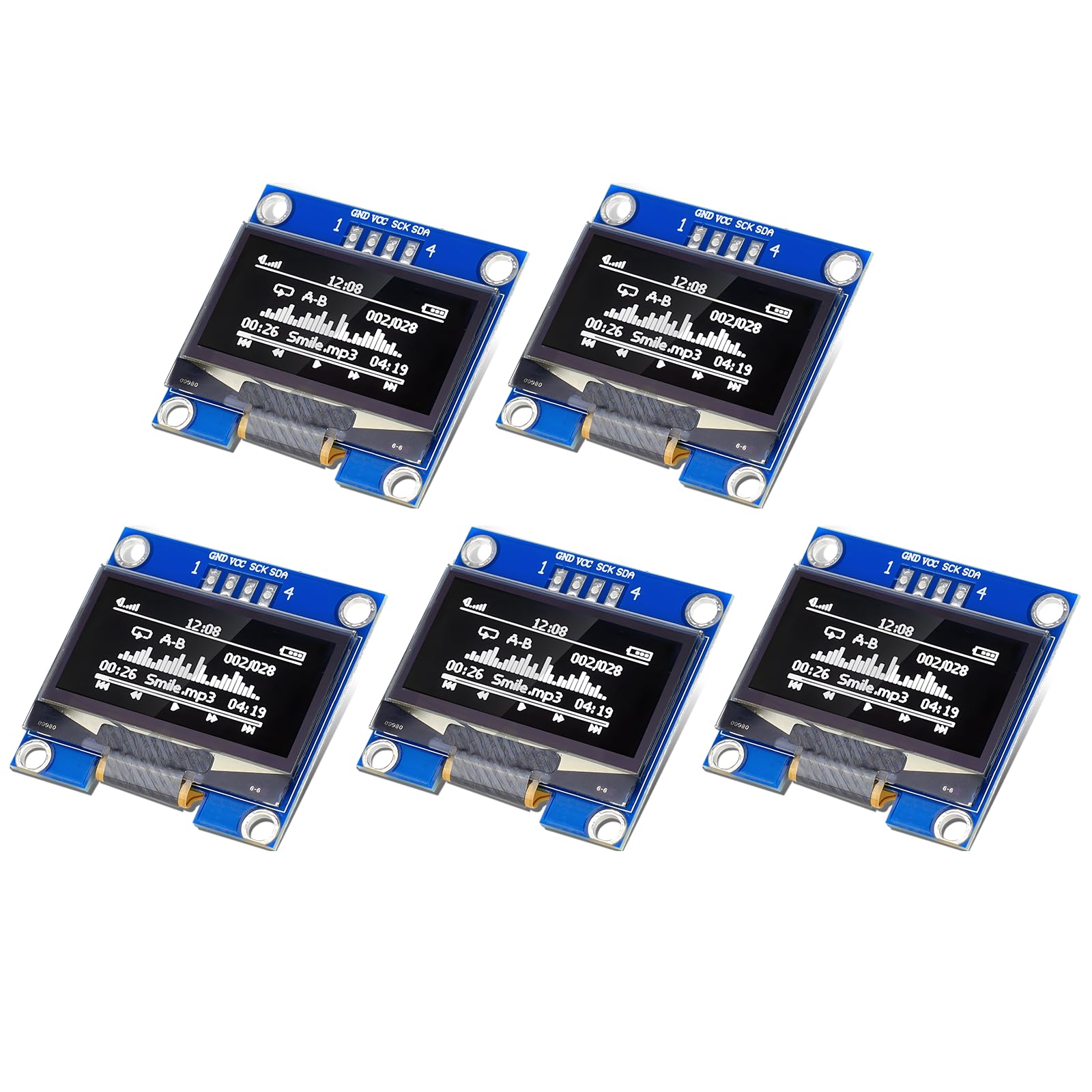 4 módulos de pantalla OLED I2C de 0.91 pulgadas con resolución de 128 x 32 CC 3.3V-5V, placa de controlador compatible con Arduino