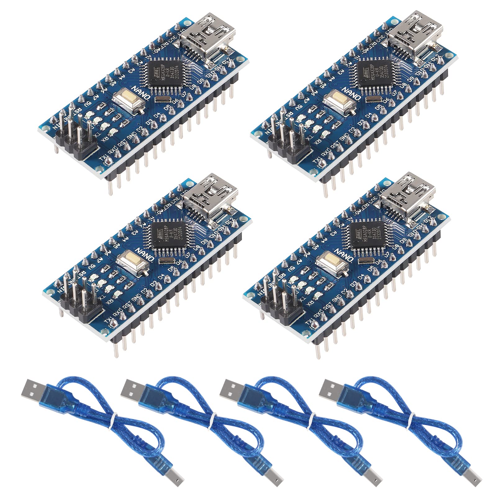 4 unids para Nano V3.0 ATMEGA328P Módulo CH340C Chip 5V 16MHz Mini USB Micro-Controlador Junta con 4PCS Mini USB Cable Compatible