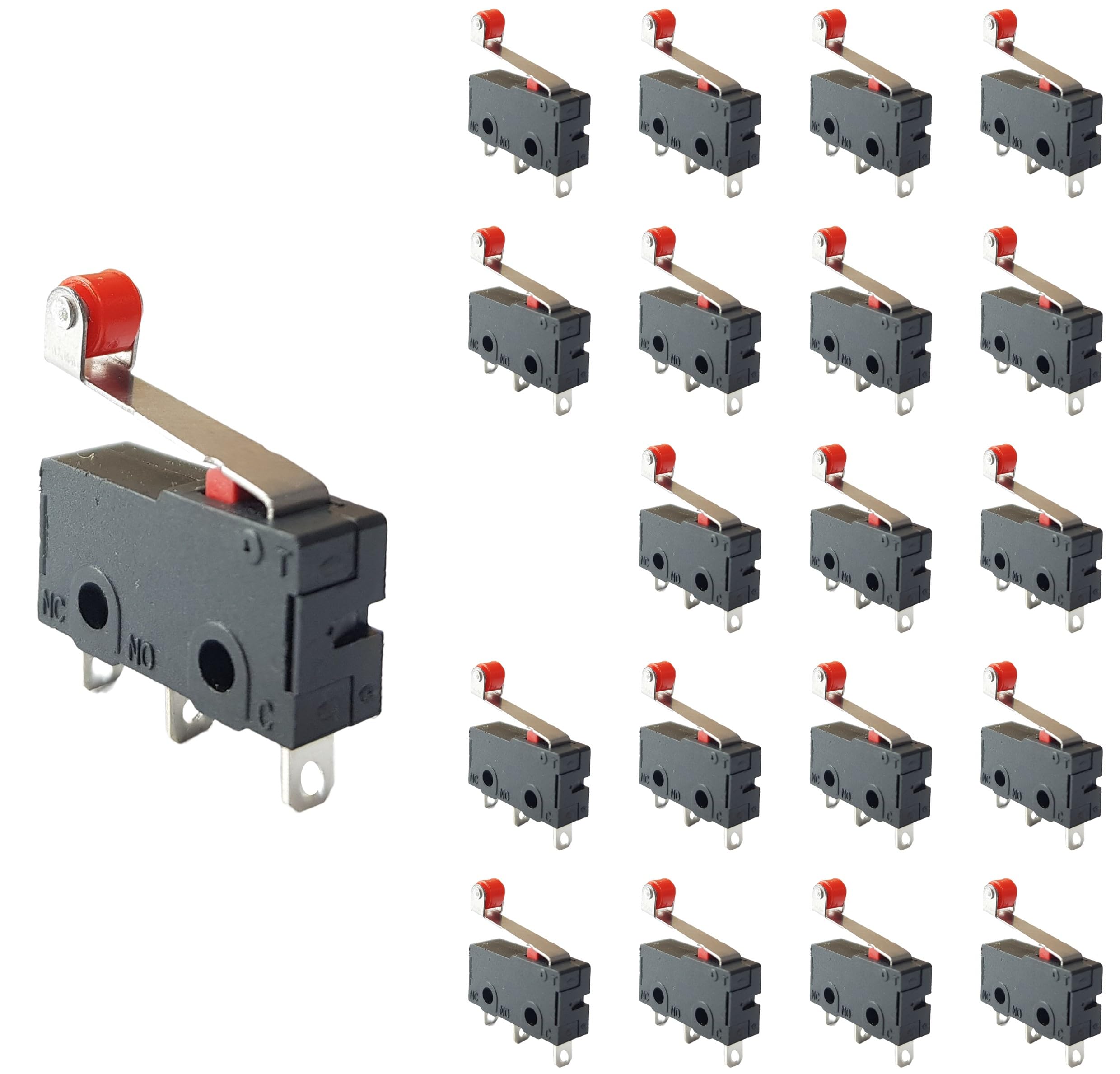 Interruptor de límite (paquete de 20) – Micro interruptor de brazo de palanca de rodillo con terminales normalmente abiertos y nor