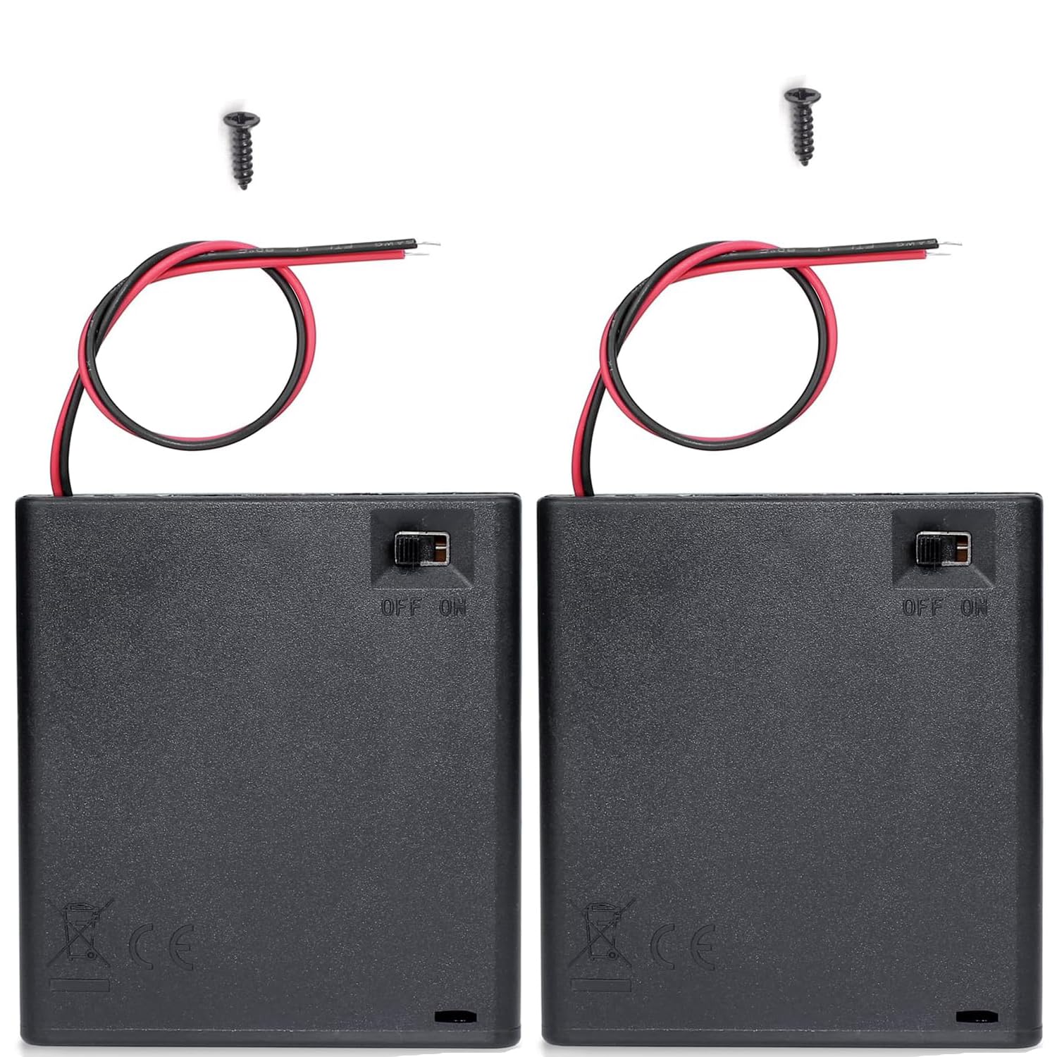 4 soportes de batería AA con cubierta de interruptor de cable de plomo y tornillos, cajas de almacenamiento de baterías de bricola