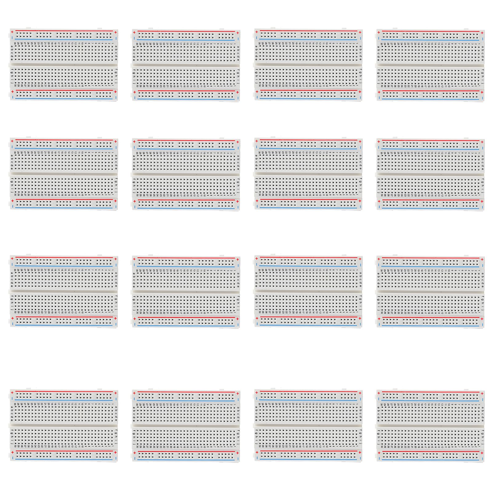 Kit de protoboard de 400 puntos de amarre para proyectos de bricolaje Arduino, prototipo de placas PCB sin soldadura (16 piezas)