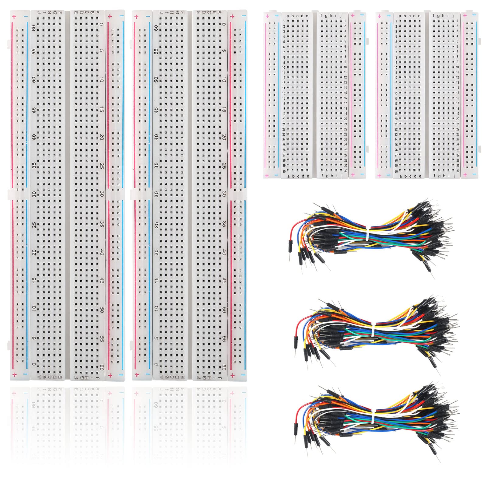 Kit de cables de puente de tabla de breadboard, 2 tableros de 830 puntos de amarre y 2 tablas de 400 puntos de amarre y 195 cables