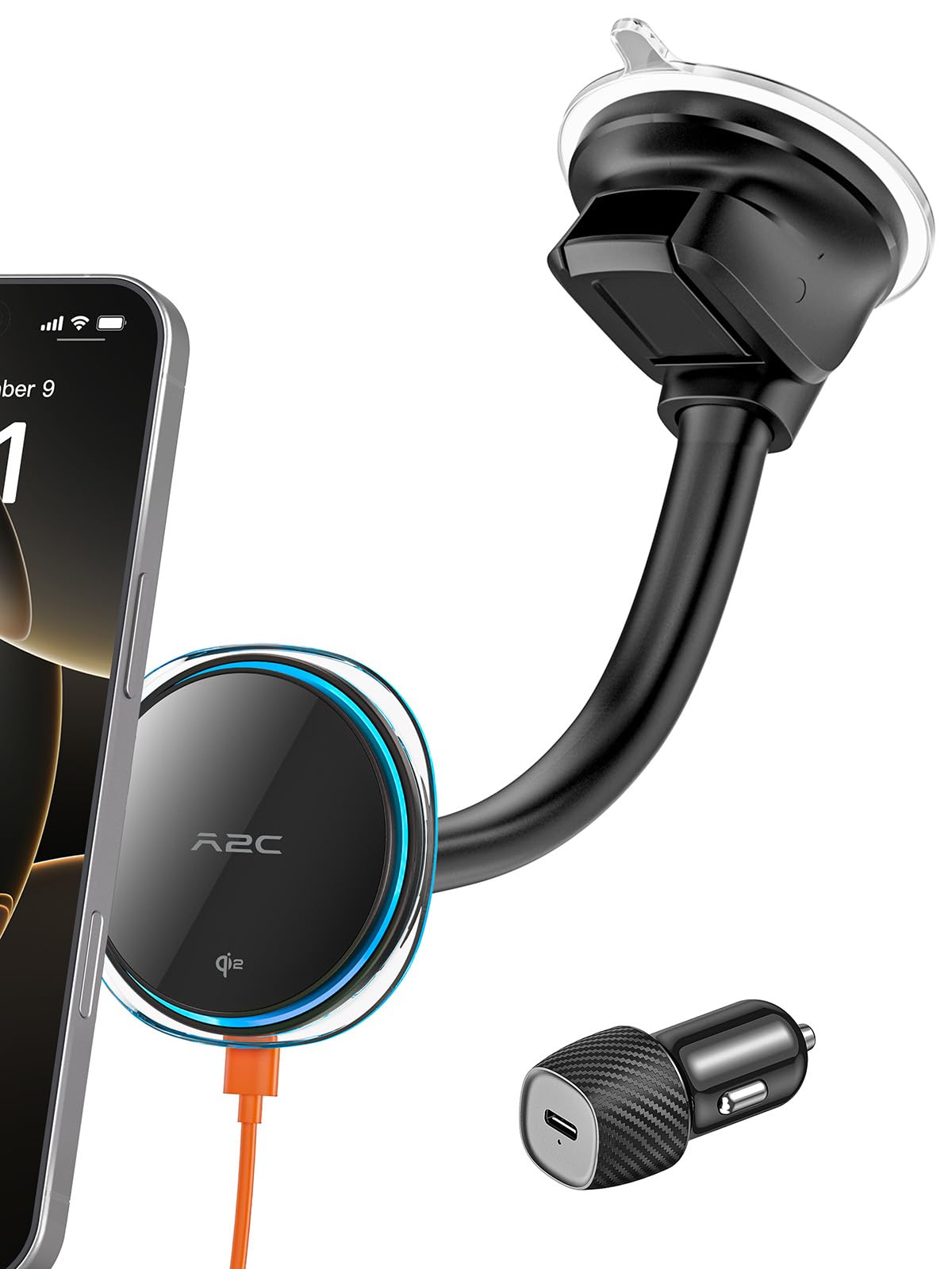 A2C Cargador de coche MagSafe Qi2 de 15 W, soporte magnético para teléfono para parabrisas de automóvil/salpicadero, enfriador sem