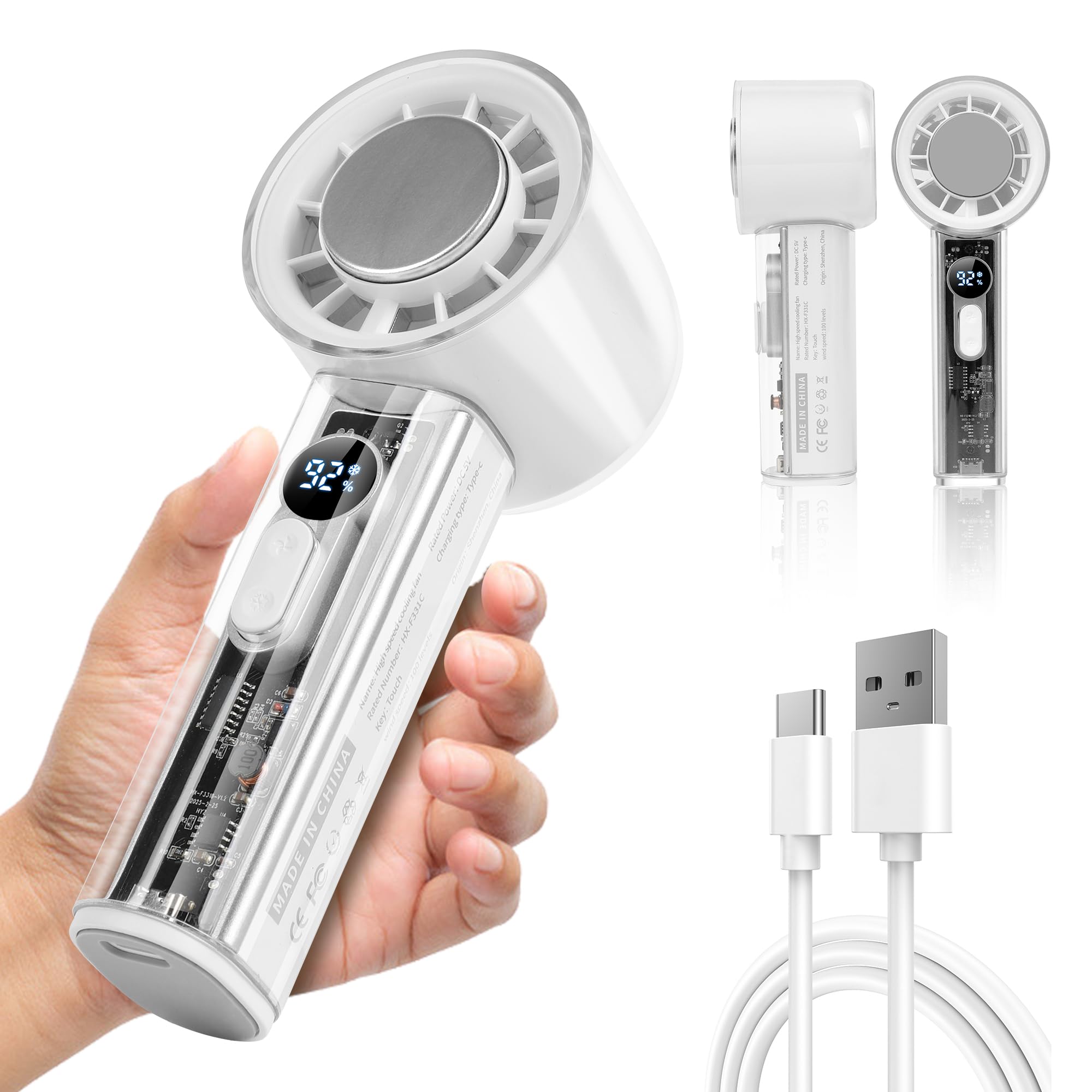 Ventilador de mano de refrigeración Turbo, mini ventilador portátil con 1-100 velocidades ajustables, batería recargable de 5000 m