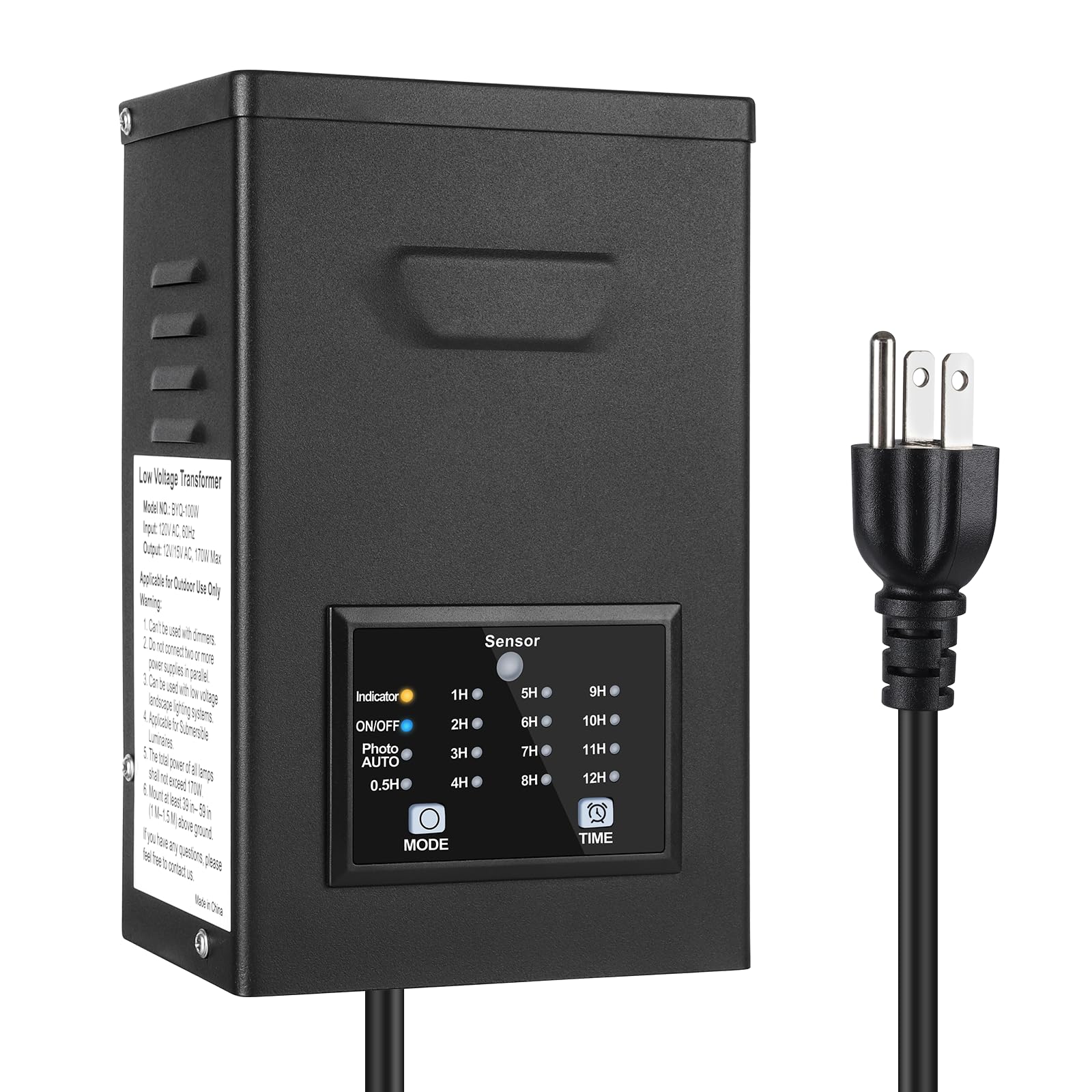 SUNVIE Transformador de paisaje de bajo voltaje de 60 W con temporizador y sensor de fotocélula, transformador de iluminación de p