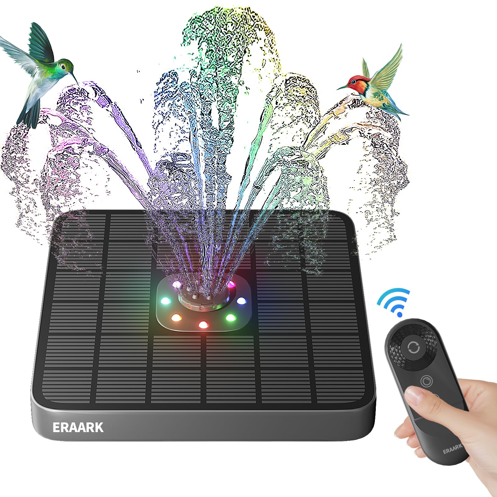 Bomba solar para fuente de baño de pájaros de 4 W con control remoto, luces LED de color, fuente solar con batería de 1000 mhA, 8