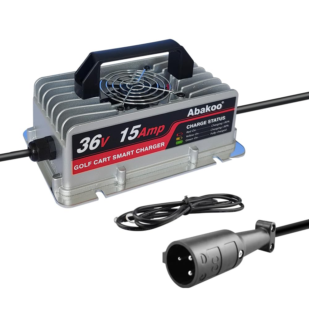 Abakoo Cargador de batería de 36 voltios y 15 amperios para carrito de golf Club Car con enchufe redondo de 3 pines, impermeable I