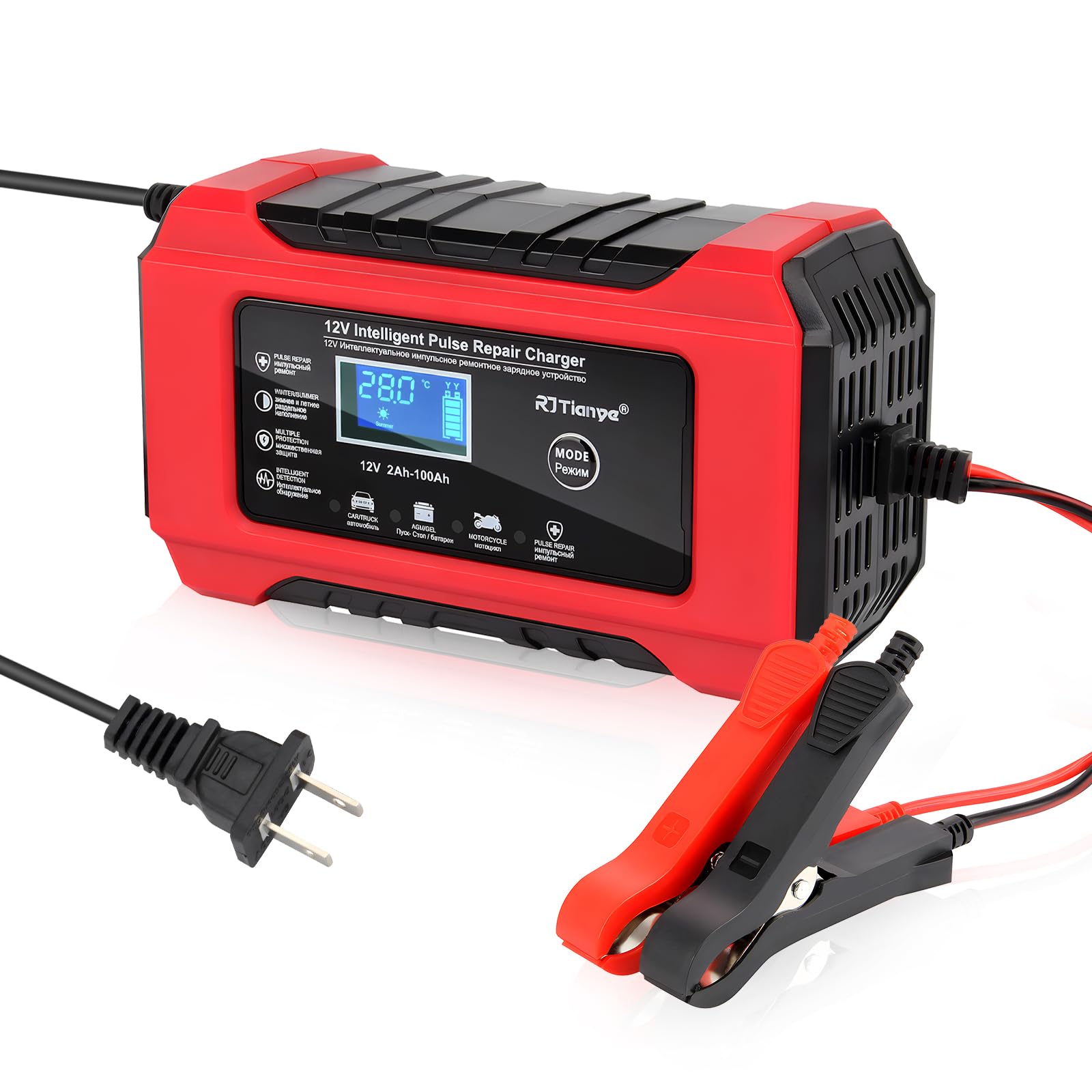 Cargador rápido de batería de 12 amperios para baterías húmedas/GEL/SLA/LiFePO4/plomo-ácido/AGM, cargador de batería multifunciona