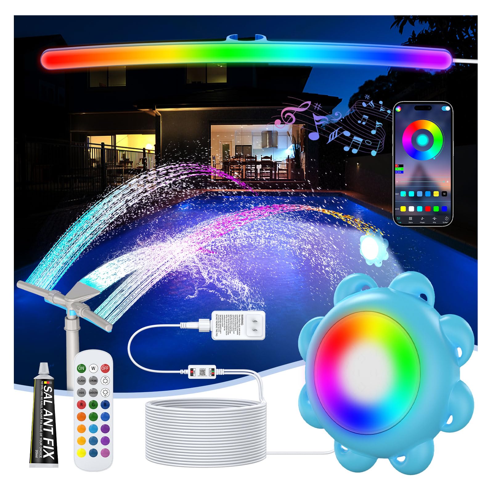 Kits de luz LED para piscina, combina con fuente de piscina, luces de piscina de 10 W para piscinas enterradas/sobre el suelo, IP6