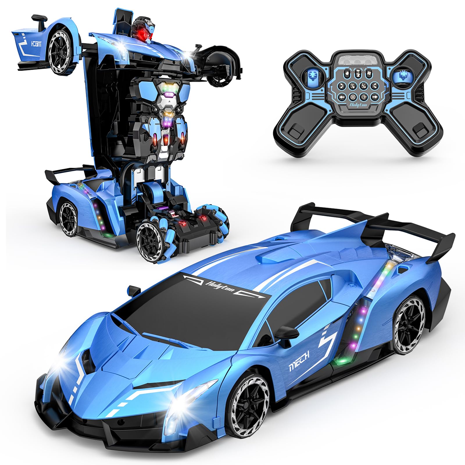 Holyton Coche de control remoto de transformación, robot transformador de autos RC, escala 1:10, auto de juguete con programación