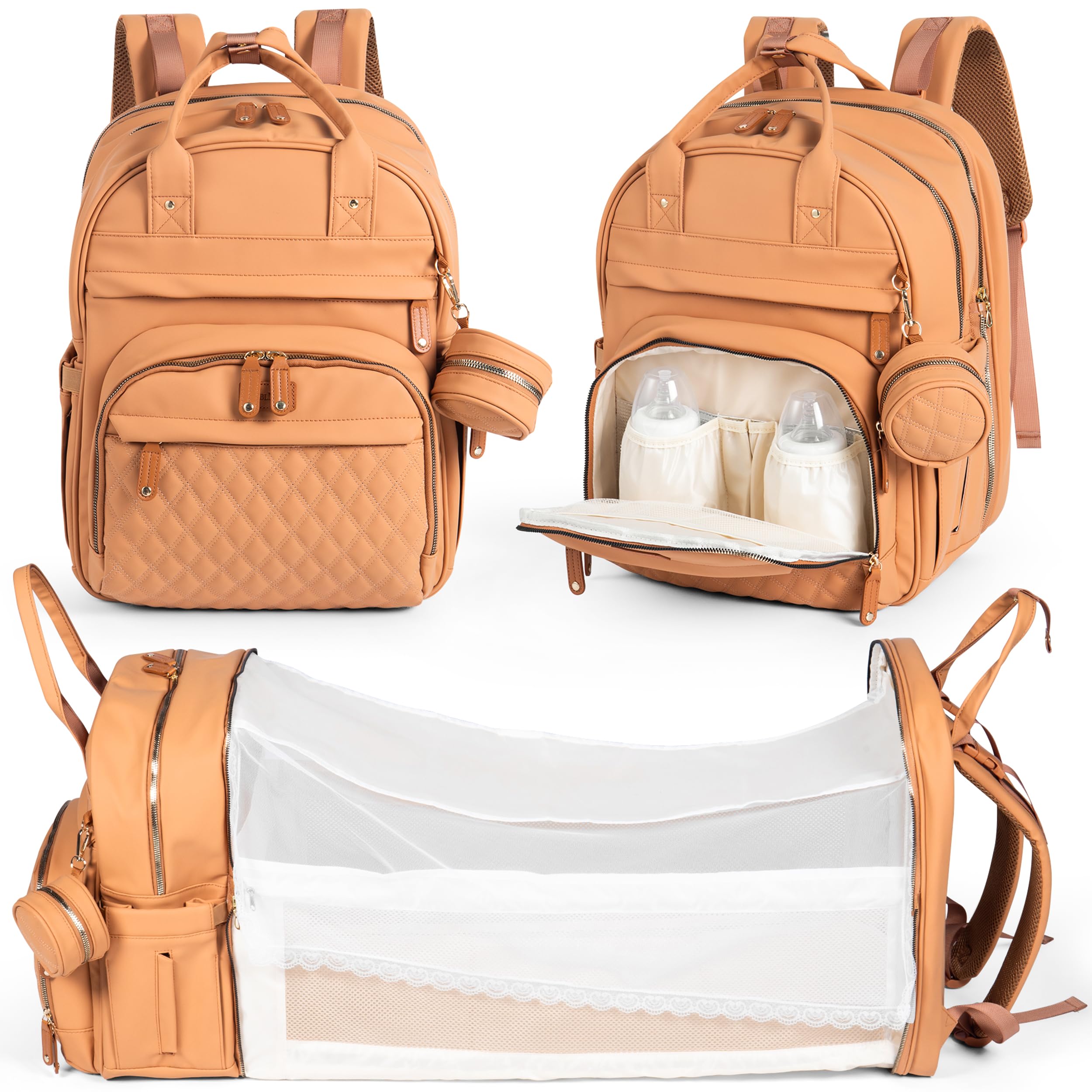 MOMINSIDE Bolsa de pañales – Mochila convertible de cuero Hobo, bolsa grande para mamá, 14 bolsillos, 6 botellas, toallitas, aisla
