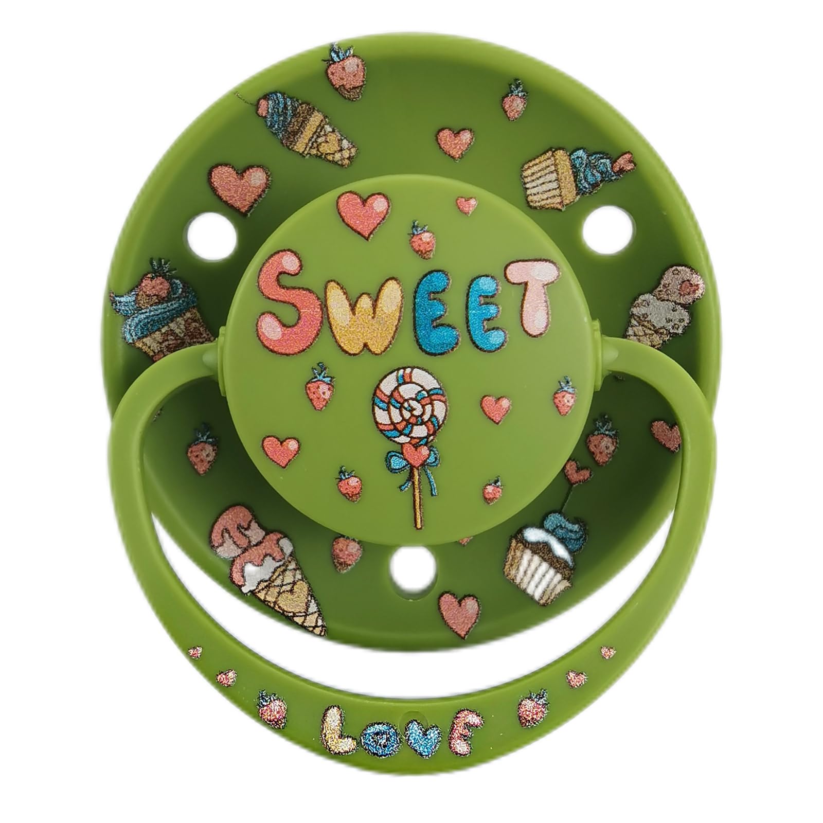 Chupete redondo único para adultos, diseño de caramelo de piruleta verde, lindo impreso con estuche