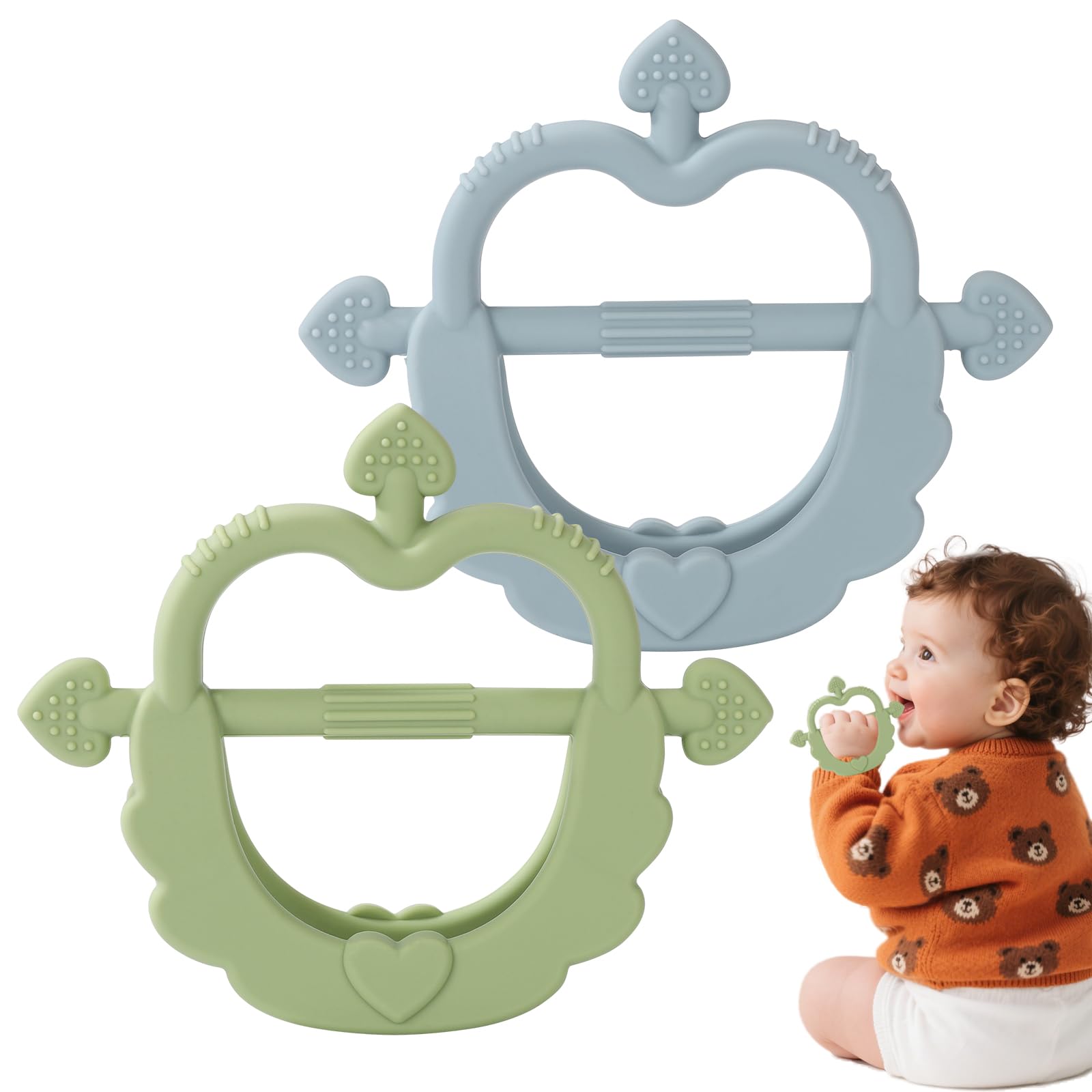 Paquete de 2 juguetes mordedores de silicona de grado alimenticio para bebés de 0 a 6 a 12 meses, mordedores anticaídas de 3 lados
