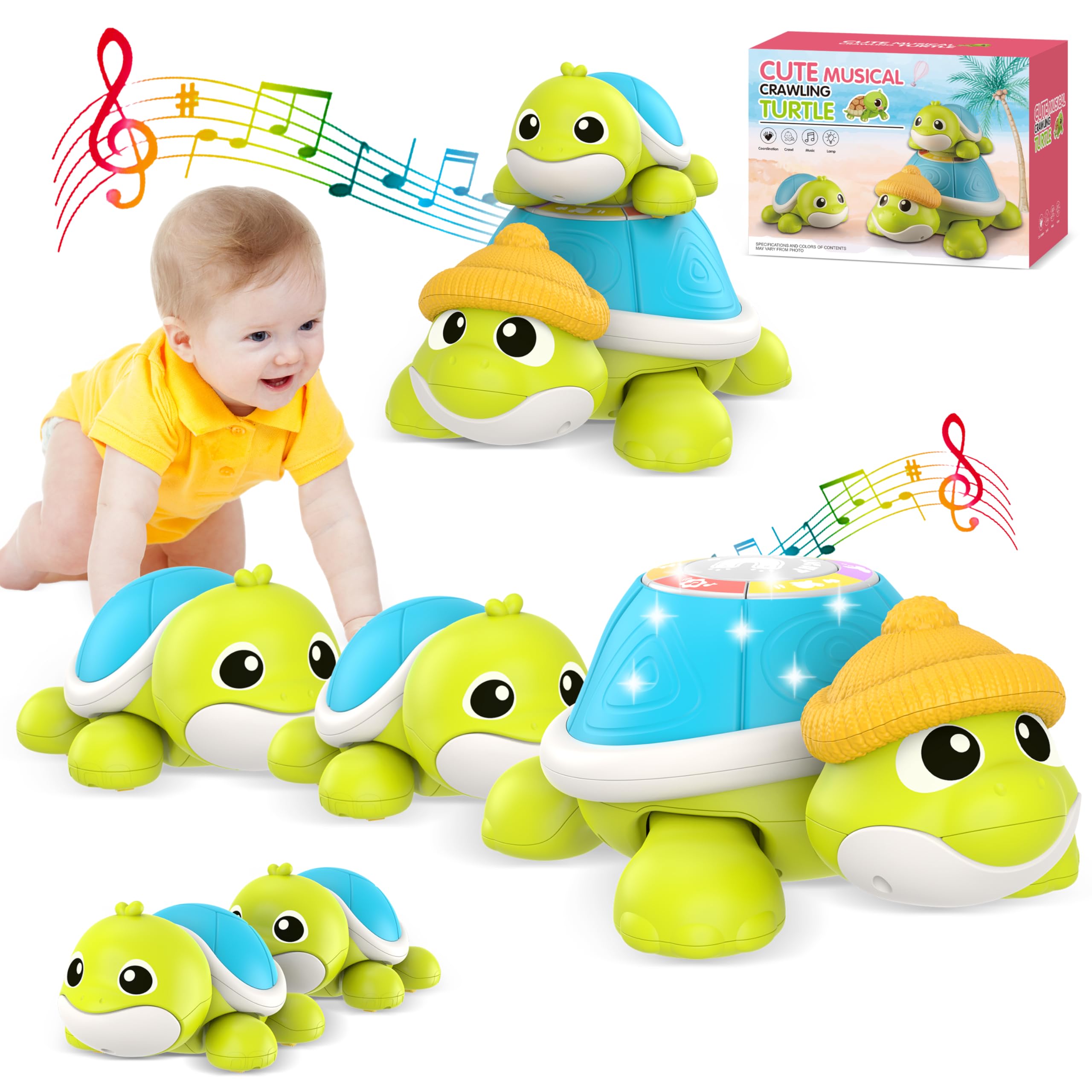 Juguetes para bebés de 6 a 12 meses, juguete musical de tortuga para gatear con mamá y bebés, juguetes para el tiempo boca abajo,