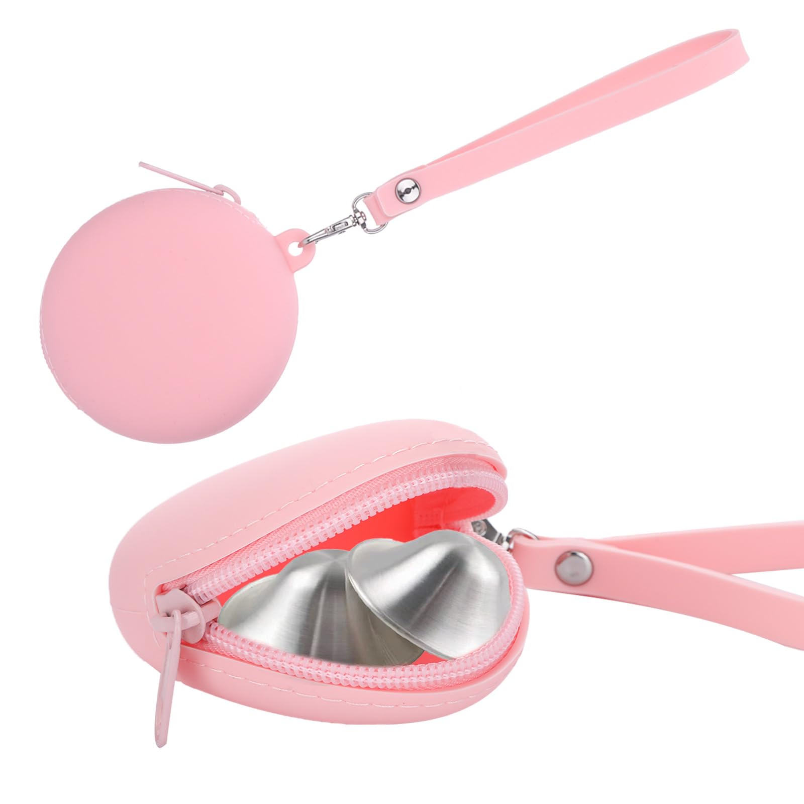 Funda de silicona rosa para pezones, estuche plateado para tazas de lactancia, soporte de almacenamiento de silicona portátil para