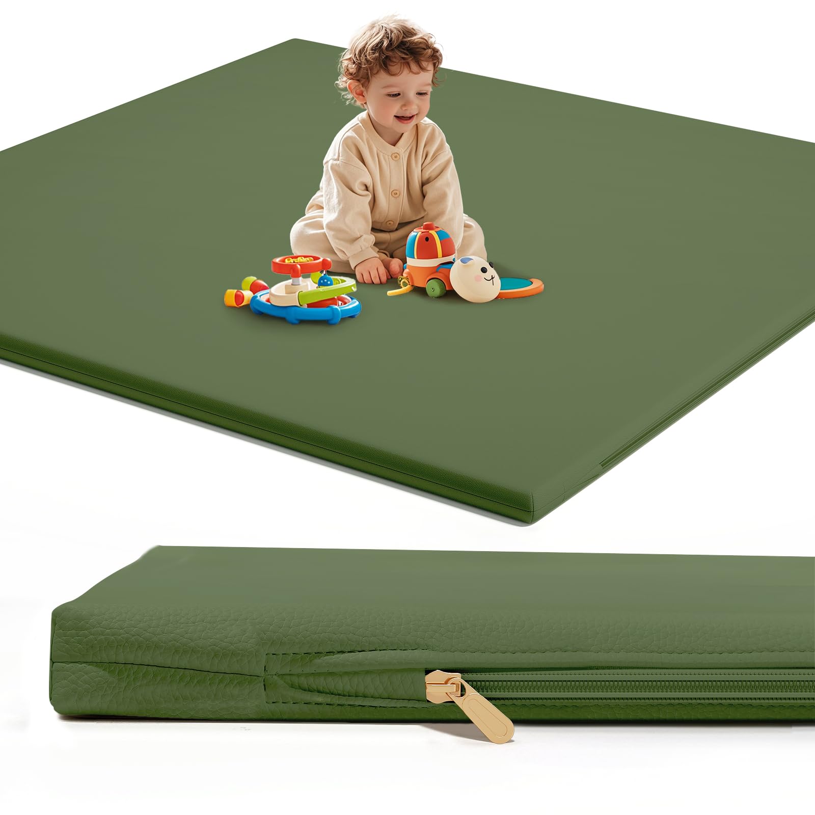 Baby Play Mat for Floor: 50×50 Thicker Cushioned Non-Toxic Vegan Leather Waterproof Infant Playmat for Babies Toddlers Kids Crawli