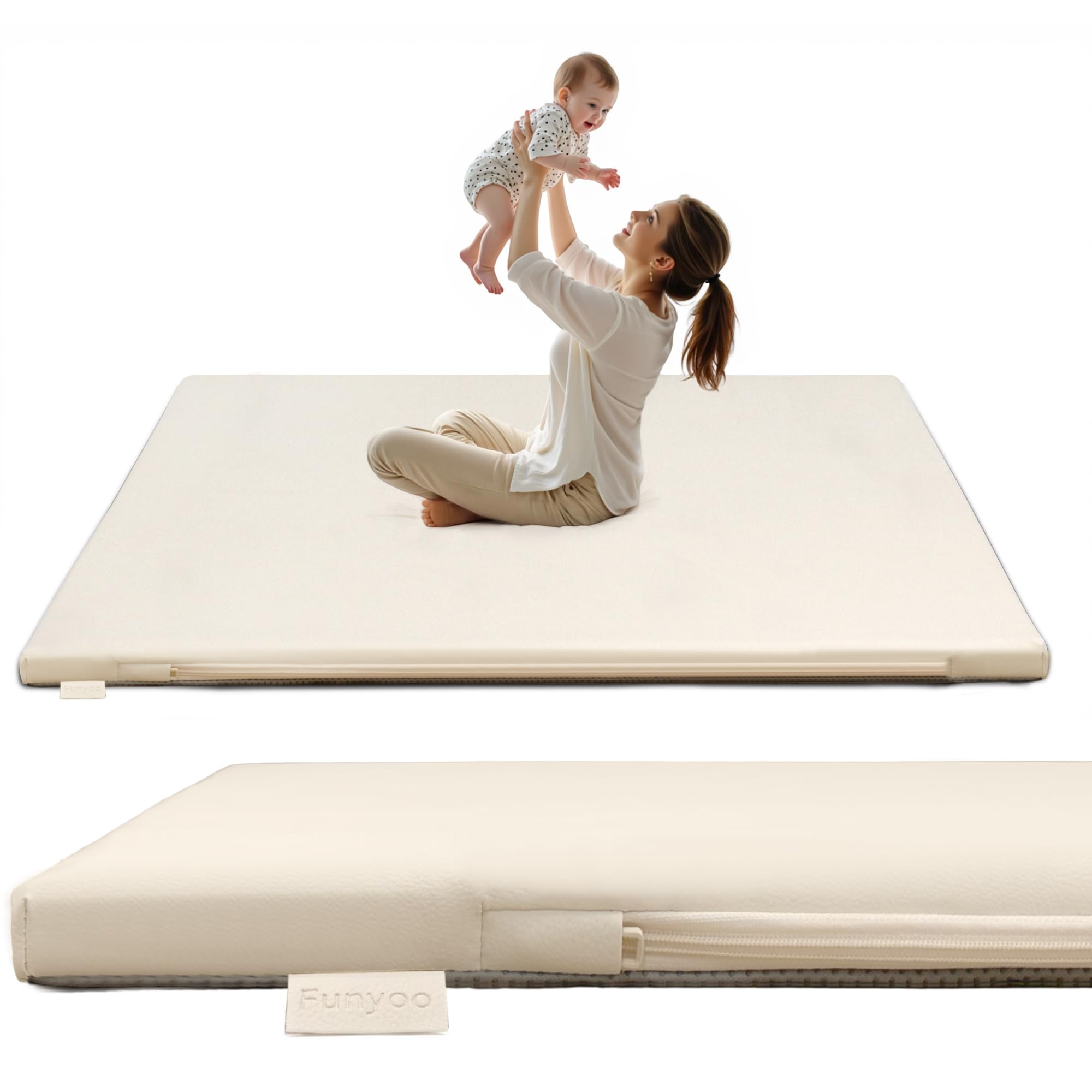 Alfombrillas de juego para bebé, plegable, de 74 x 50 pulgadas, acolchado grueso para bebés y niños pequeños, antideslizante, lava