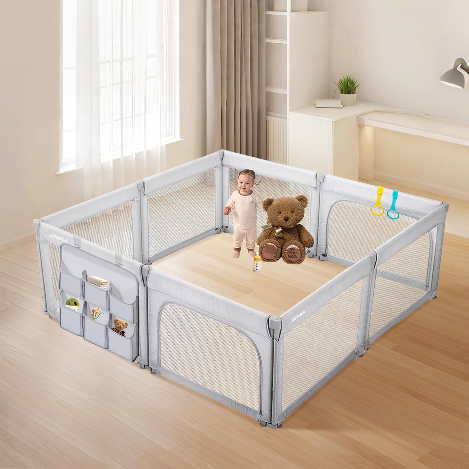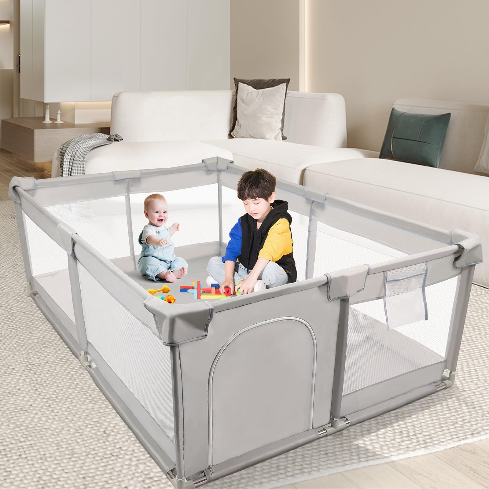 Corralito para bebés de 79 x 79 x 27 pulgadas con tapete de seguridad, corral extragrande para niños pequeños, patio de juegos por