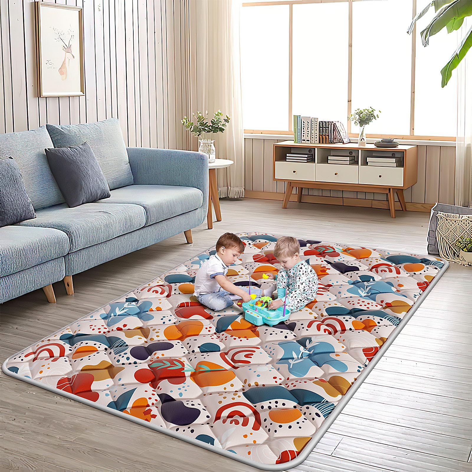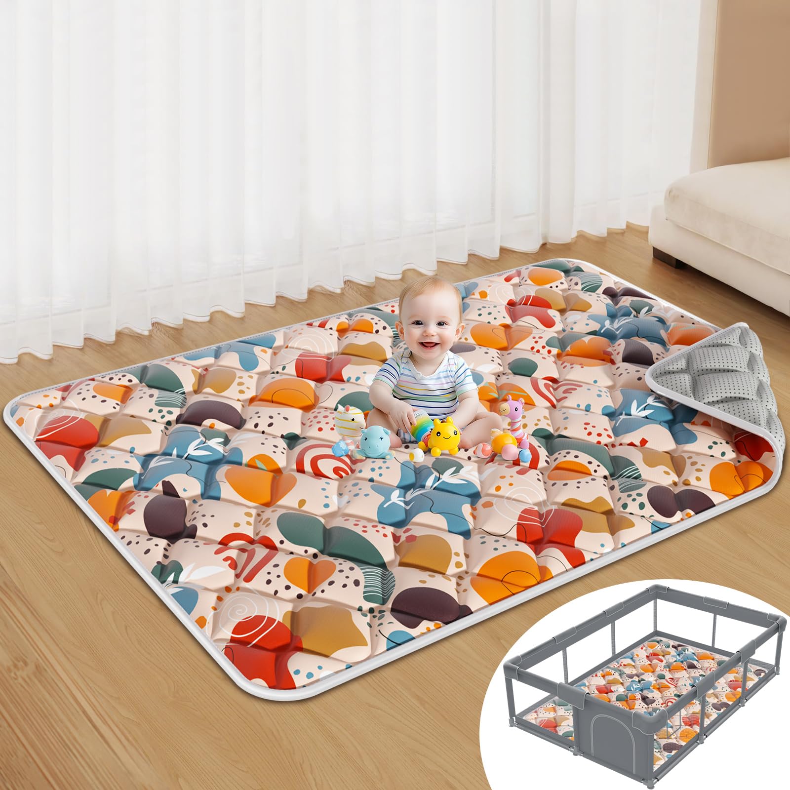 Alfombra de juego para bebé para suelo, 79 x 71 pulgadas, espuma gruesa, suave, acolchada, con funda extraíble lavable a máquina p