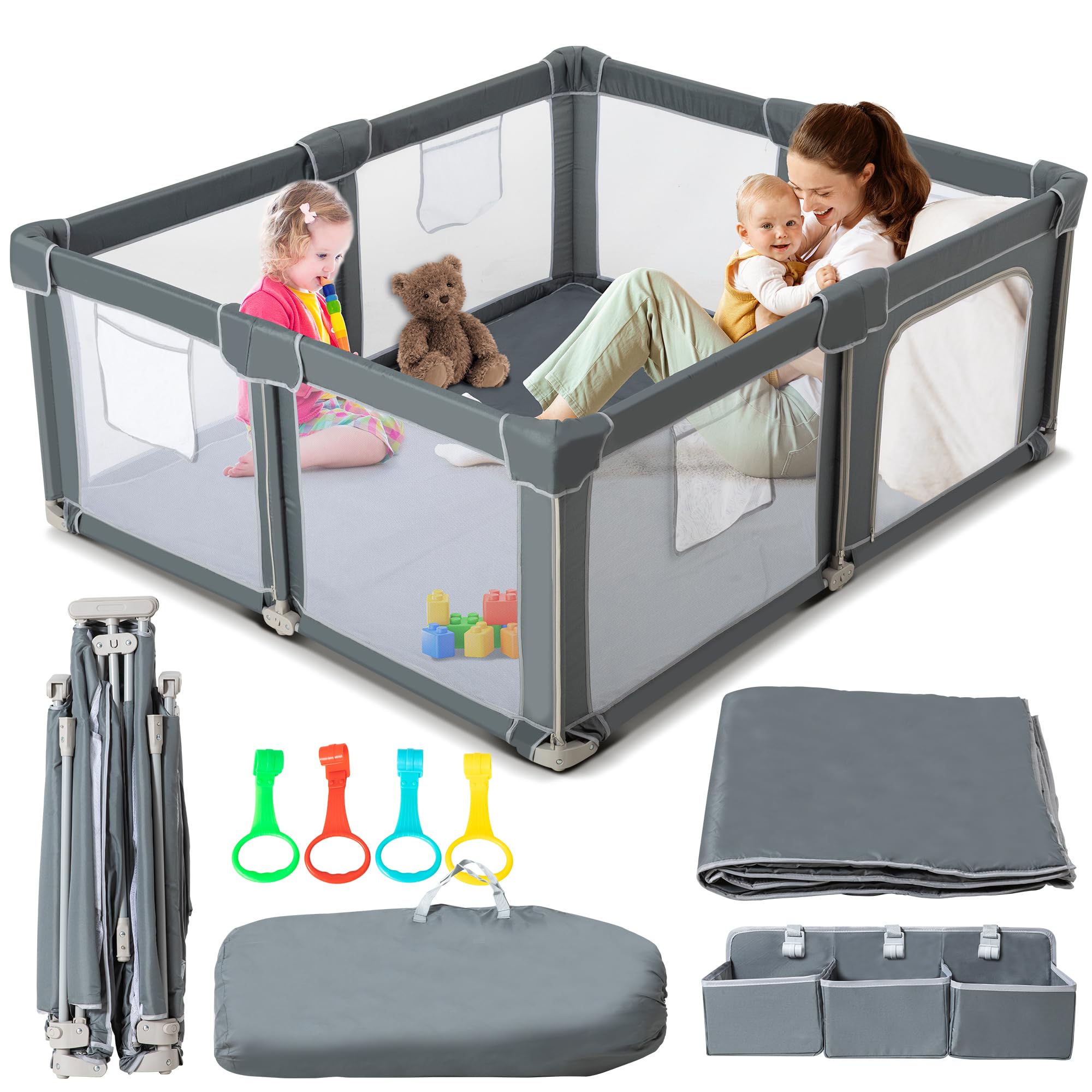 Corral grande para bebés con alfombra, 71 x 59 pulgadas para bebés y niños pequeños, corralito grande con bolsa de almacenamiento,