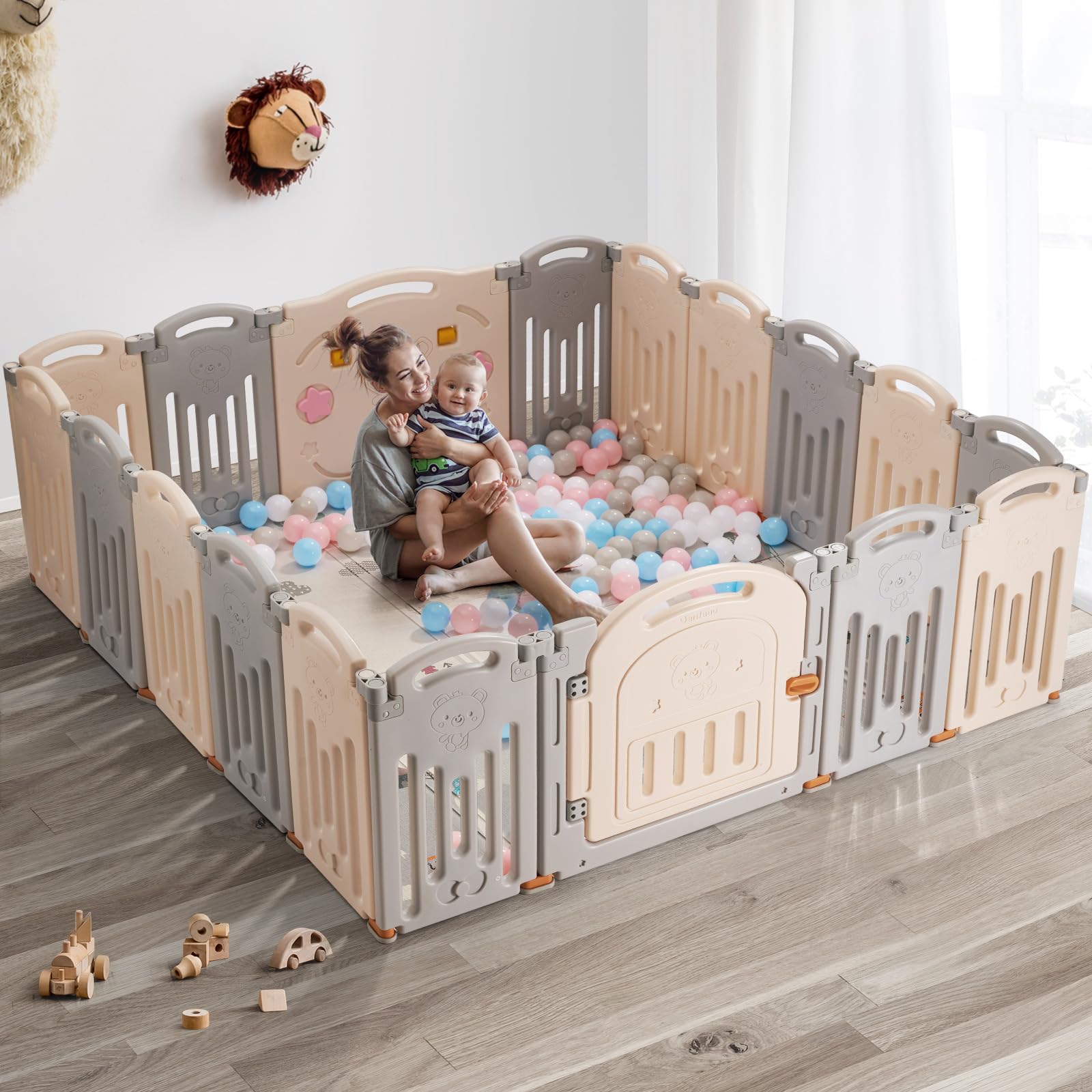 Uanlauo Corralito para bebés, patio de juegos plegable de 18 paneles para niños pequeños, valla de seguridad fácil de montar (gris