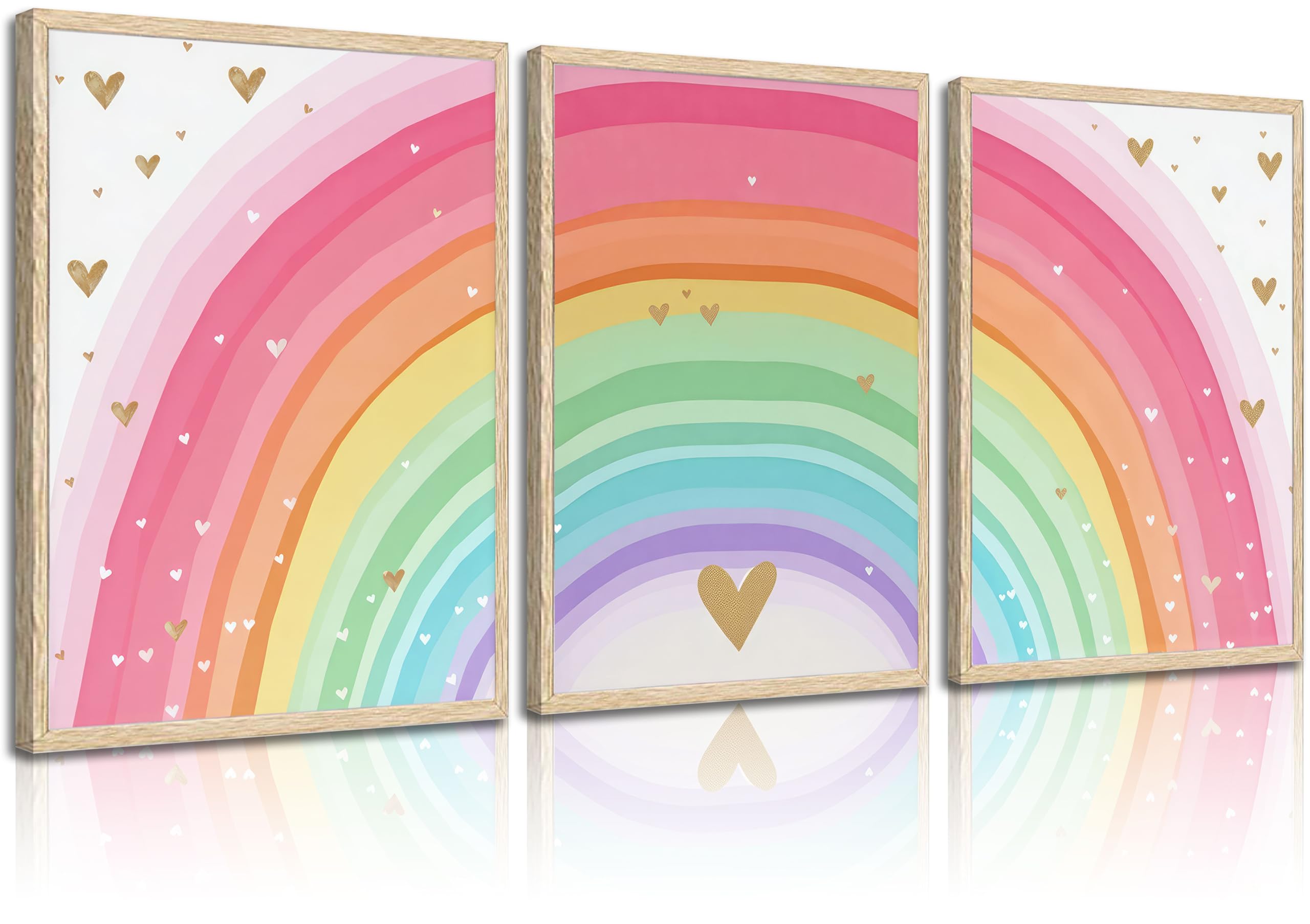Juego de 3 lienzos de pared de arcoíris para niñas, pintura colorida para decoración de pared de guardería, póster con imagen de c