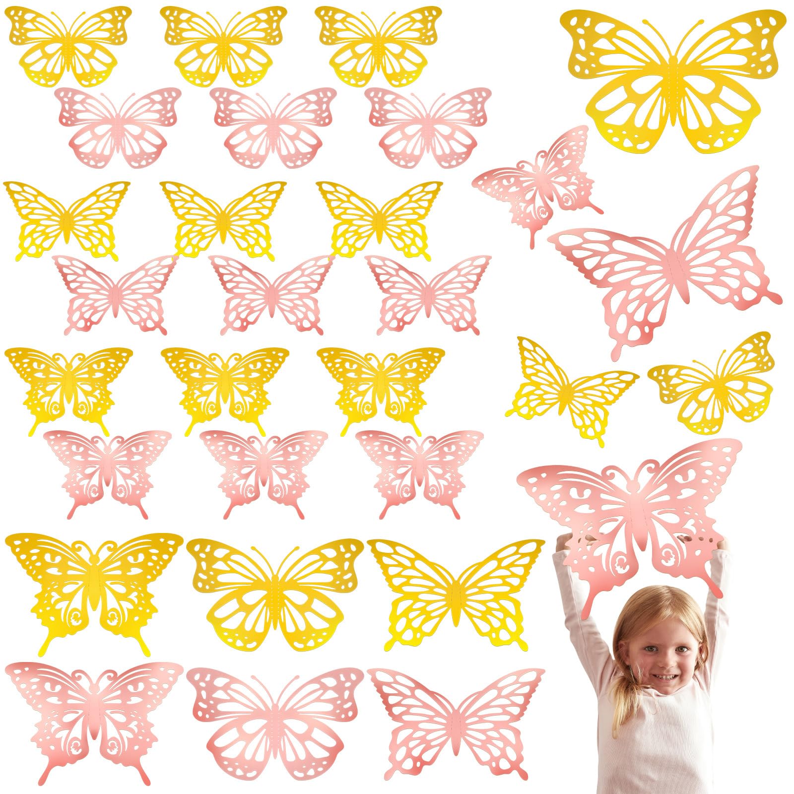 Yeaqee Juego de 24 piezas de decoración de pared de mariposas grandes en 3D, 2 tamaños y 3 estilos, calcomanías grandes para cumpl
