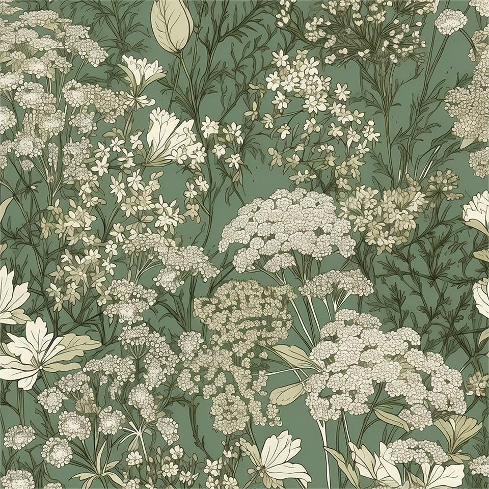 Papel tapiz vintage de flores silvestres verdes y blancas con diseño de flores silvestres para despegar y pegar, autoadhesivo, ext