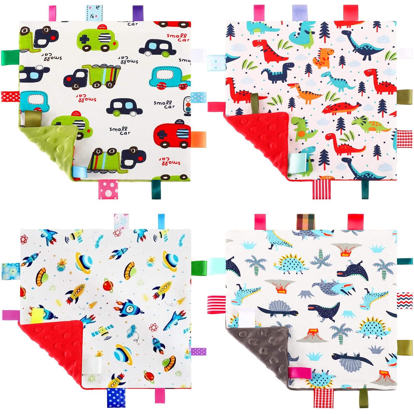 Breling 4 mantas de seguridad con etiquetas de bebé para comodidad del bebé con etiquetas de colores, toalla calmante para cama de