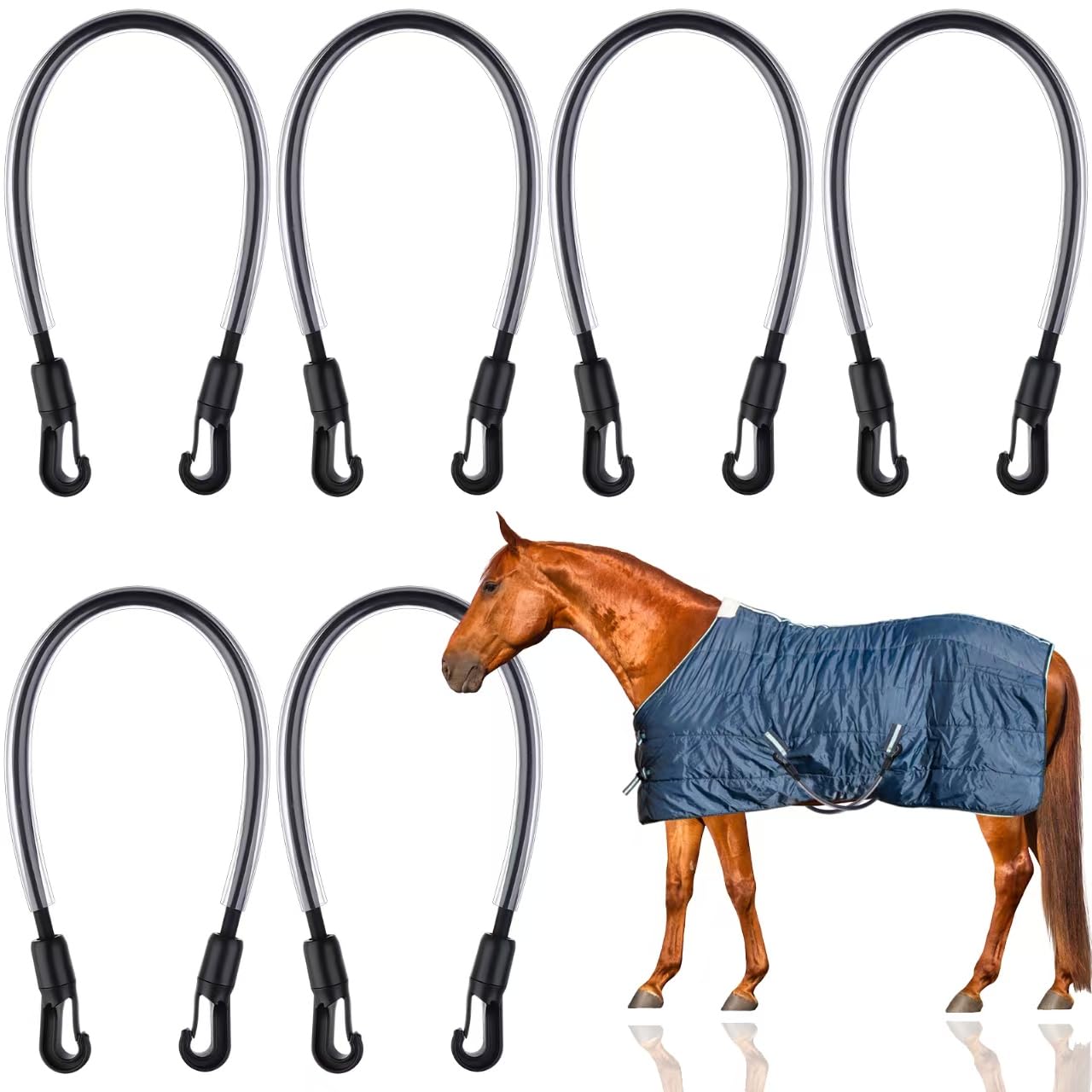 Paquete de 6 correas elásticas para las piernas para manta de caballo, correas elásticas de repuesto con clips terminados, longitu