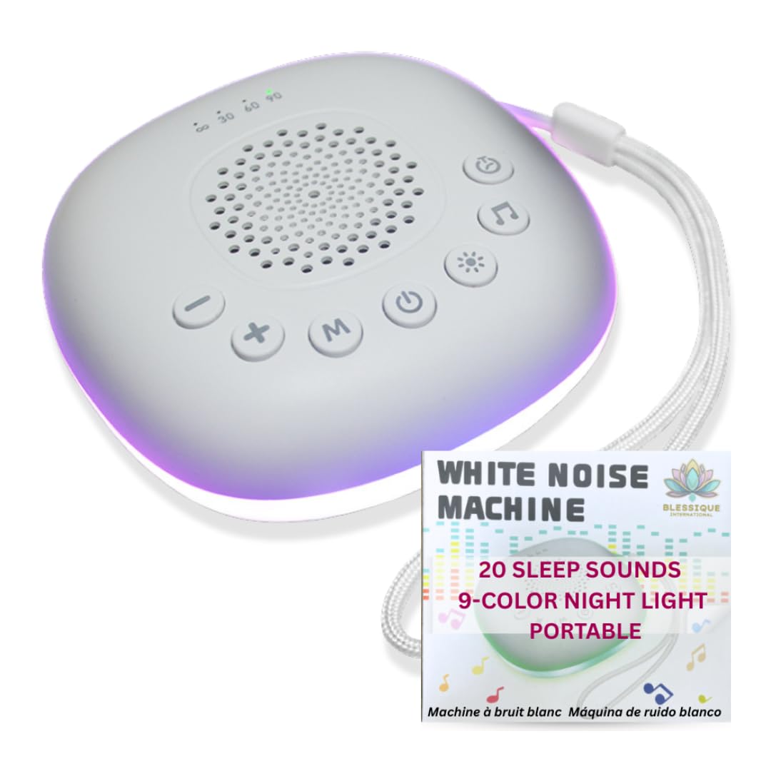 BRIGHTX – Máquina de ruido blanco con luz nocturna, máquina de sonido recargable por USB con 34 sonidos relajantes y 7 temas de lu