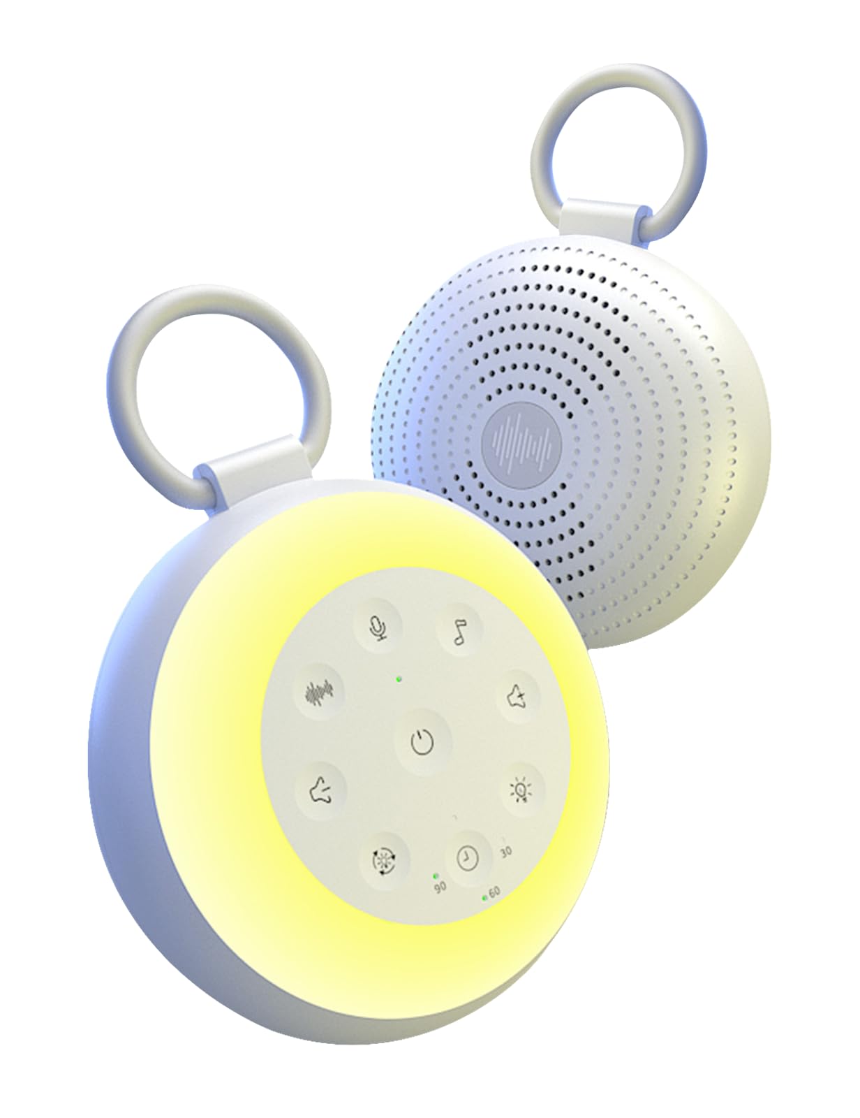 Máquina portátil de ruido blanco, mini máquina de sonido para viajes con luz nocturna de respiración, 16 sonidos relajantes, tempo