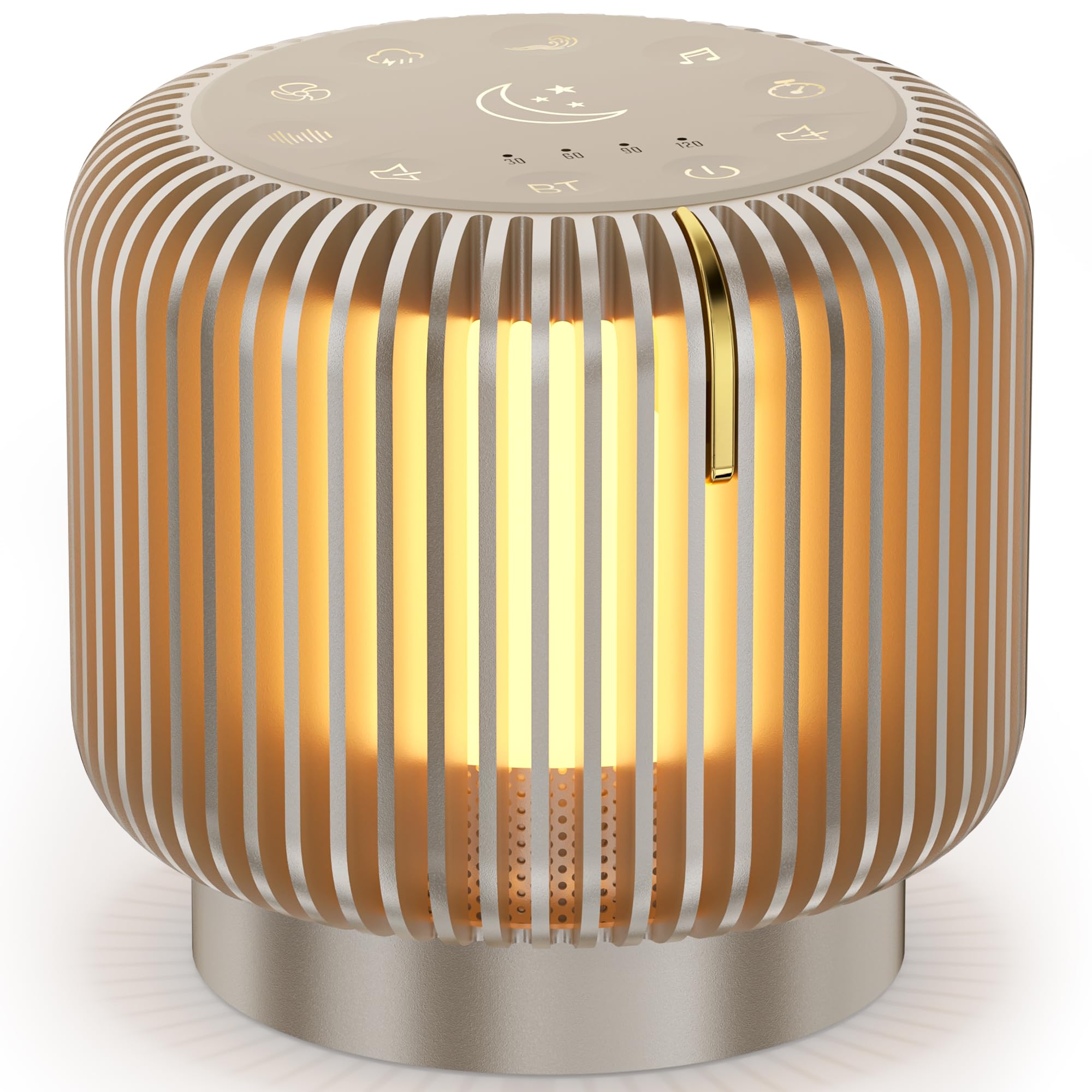 Máquina de sonido de ruido blanco Altavoz Bluetooth para adultos y niños, 26 sonidos relajantes, luz nocturna regulable, 4 tempori