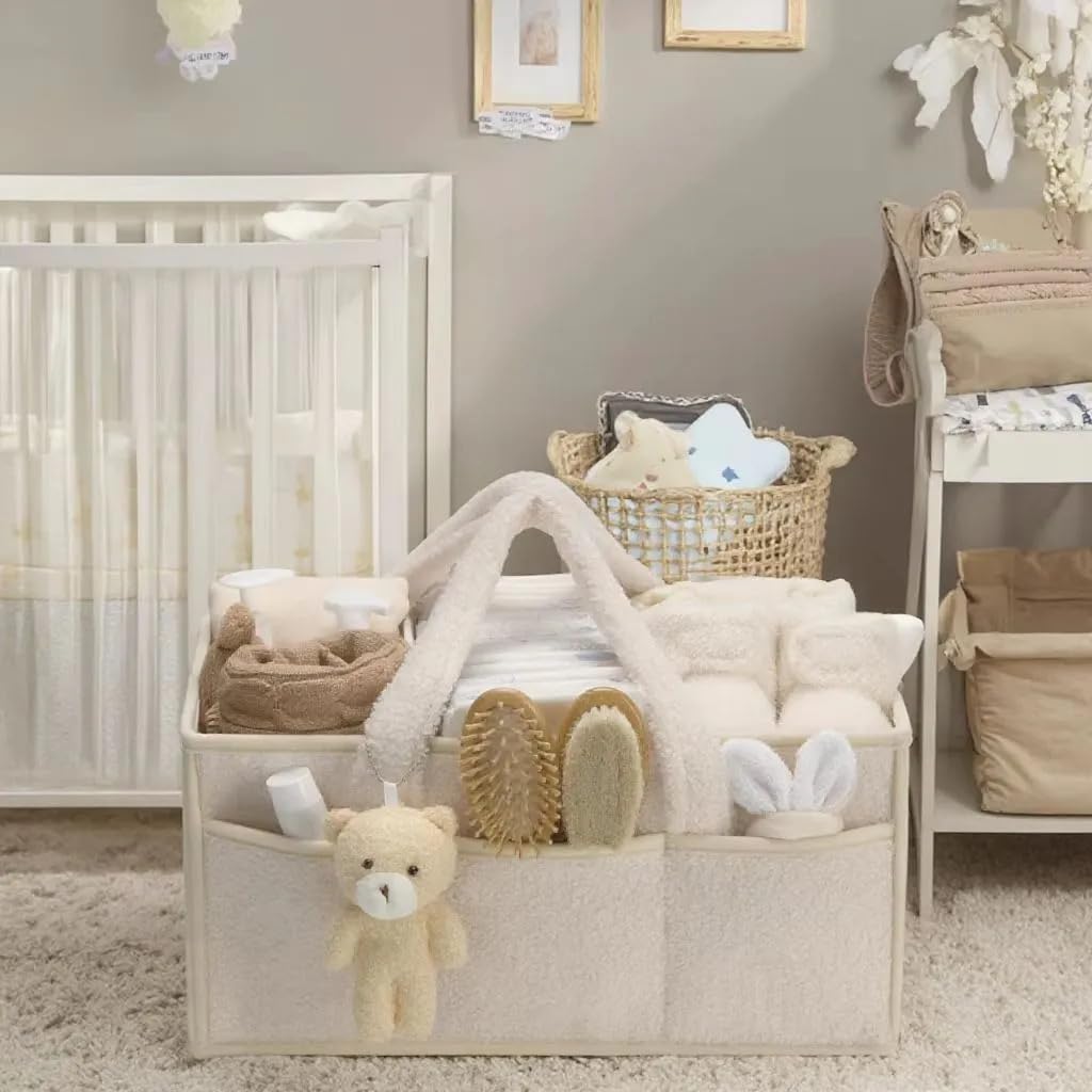 Organizador de pañales de peluche | Cesta de almacenamiento suave y portátil para bebé | Gran capacidad para pañales, toallitas, b