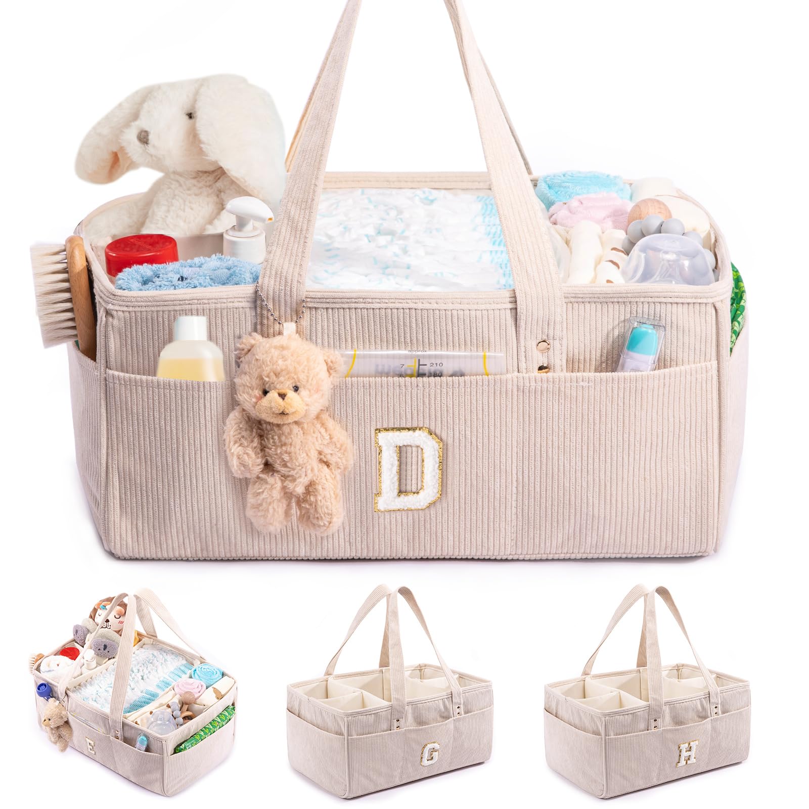 SFYBYHEART Cesta de pañales personalizada con inicial, cesta de almacenamiento para pañales y toallitas, regalo de ducha, organiza