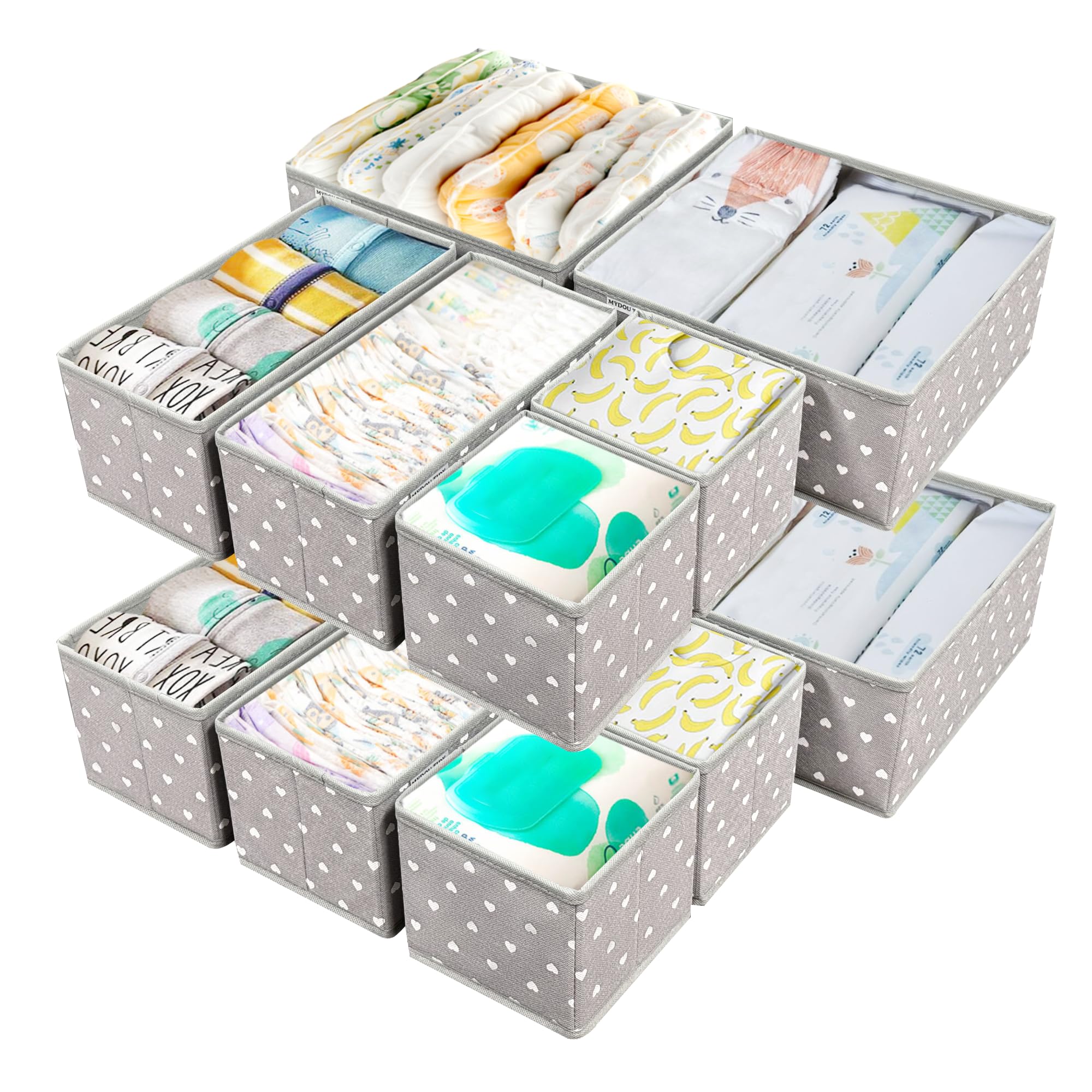 Contenedores organizadores de cajones de tela para guardería, paquete de 12 divisores de cajones para vestidor de bebé, cajas de a